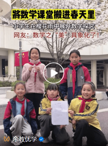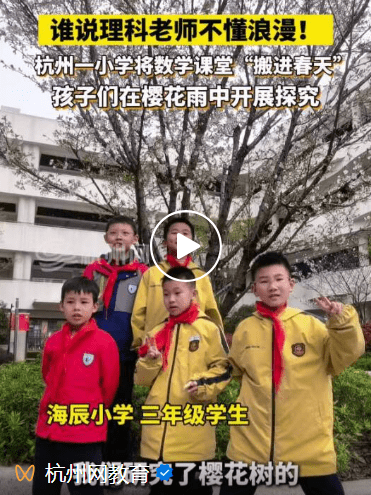谁说理科老师不懂浪漫!杭州一小学将课堂搬进春天,带孩子们在 #樱花 雨中探究 #数学