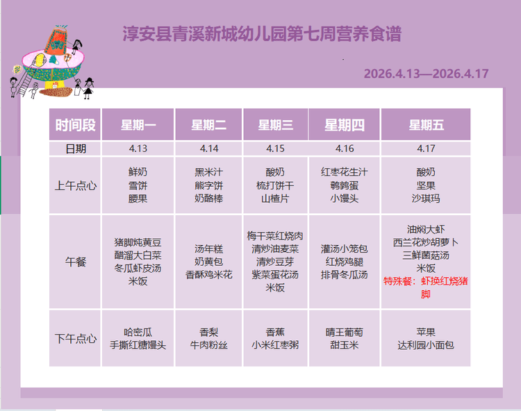 淳安县青溪新城幼儿园第七周营养食谱