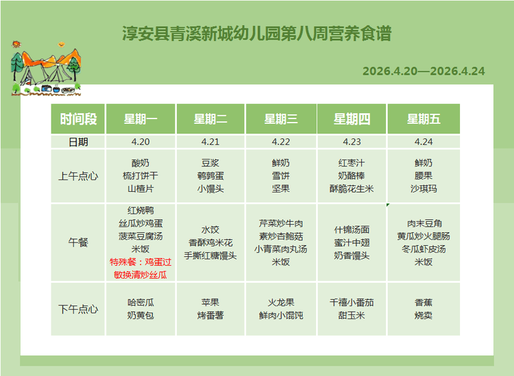 美好“食”光 健康成长 ---美好晨晖幼儿园第七周(4月20日-4月24日)健康食谱