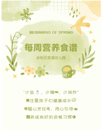 育见食光里|萧山区闻堰中心幼儿园第八周菜谱来啦!