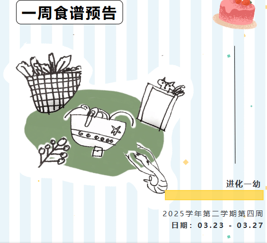 【JIN·食育】进化一幼2025学年第二学期第四周营养食谱