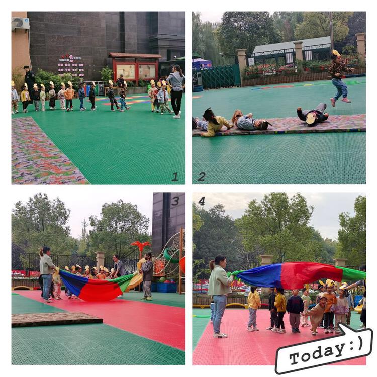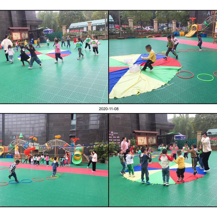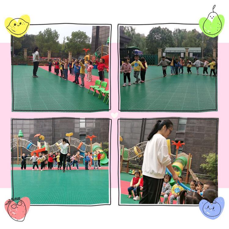 田老师——《动物王国运动会》。孩子通过扮演不同小动物进行比赛,取得成功的喜悦,激发他们参加体育活动的乐趣,培养孩子体育精神。