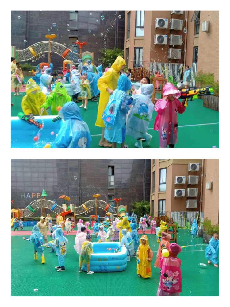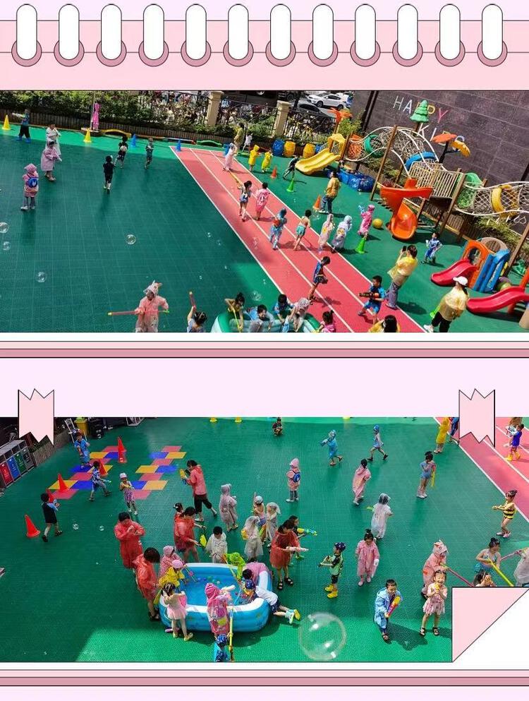 漫天泡泡,歌声飞扬,“六一玩水节”活动结束了。久久回荡在操场上的是大朋友和小朋友们一起愉悦的笑声,水花声,像一个个美妙的音符,谱出一首幸福的歌!