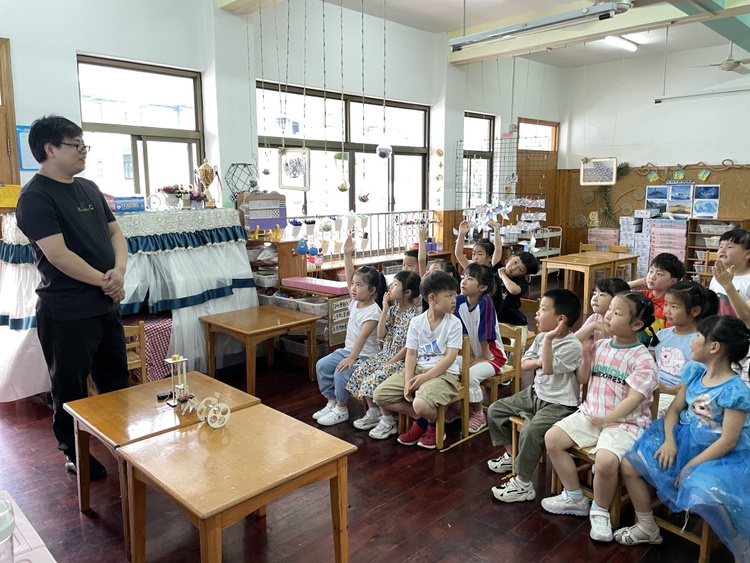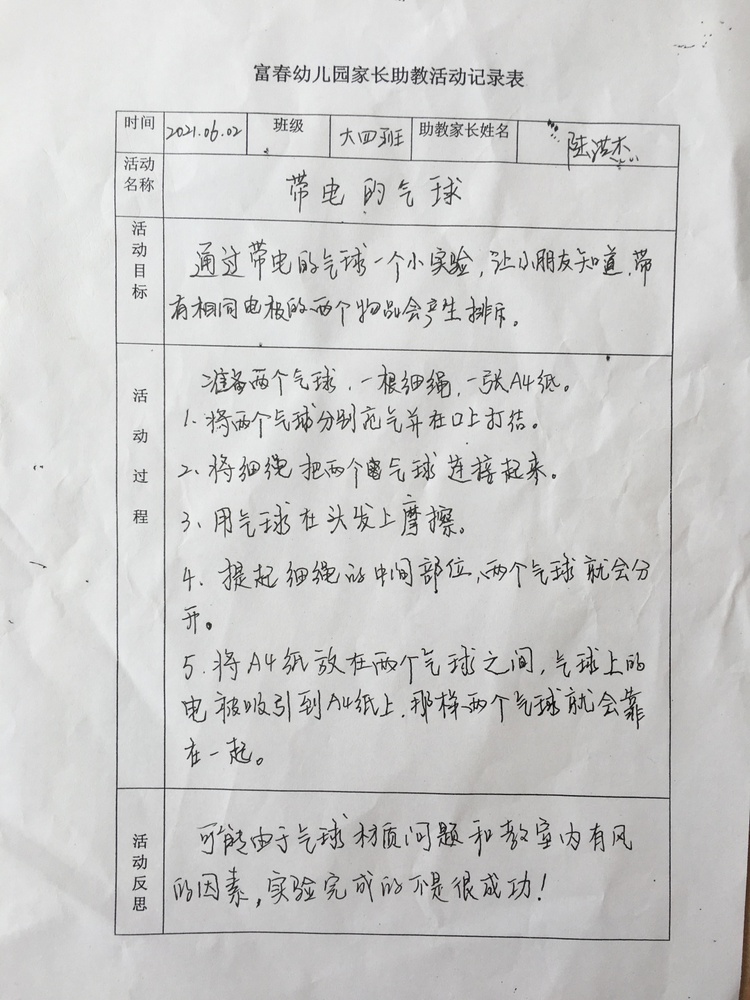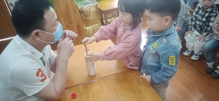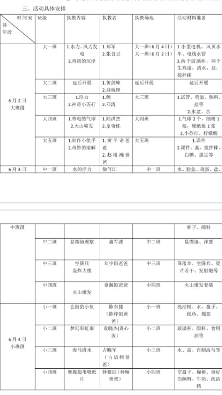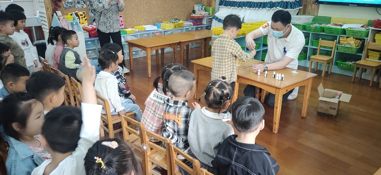 大千世界,奇妙无穷,这世间的万物吸引着小朋友们好奇的眼光。为了引导幼儿探索、体验科学的奥秘,结合“科技节“,各班特邀请不同职业的优秀老爸走进课堂,通过一系列生动、有趣的科学操作实验,给孩子们带来了不一样的收获。 特殊的方式,特别的遇见,老爸的出现,给了我们很多的故事和惊喜......老爸们各显身手,快去目睹他们的风采吧! 有趣的浮力 课前准备 大一班李雅泊爸爸 01 中一班徐可爸爸 通过探究和实验,我终于知道鸡蛋在盐水中浮起来的秘密,赶紧把它告诉我的小伙伴。 火山爆发 爸爸特别喜欢做实验,别急,奇迹马上出现 中四班章瀚颖爸爸 大四班章天佑爸爸 原来小苏打水和柠檬酸混合会产生气泡,火山是这样形成的。 让我来试试 哇!太神奇啦! 爱科学,玩科学,这次实验成功啦! 带电的气球 猜猜我们在干嘛 小四班钟晴爸爸带我们玩气球,摩摩摩,擦擦擦,啊呀!突然被电击,原来这就是静电。相同电极还会产生排斥,你一定不知道吧,快快收藏噢! 会游的小鱼 哇!小一班陈梓恒爸爸带来了许多小客人 原来是小鱼 想知道小鱼是怎么游的吗?我们一起来找答案 2021 06·4 许多小鱼游来了 原来是洗洁精表面的活性剂推动小鱼游啊游,小朋友们,你们也可以来试试噢! 什么? 科学小实验只有这些吗? 不,不,不, 好戏还在后头呢! 请看,请看...... 《大气压》 大三班 邓家洋爸爸 梦幻彩虹雨 小二班 袁心汝爸爸 小三班 占语桐爸爸 海马潜水 科技小制作