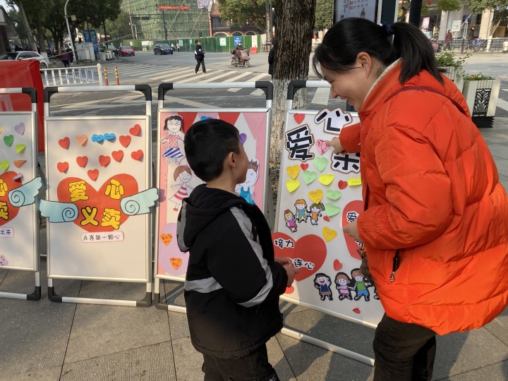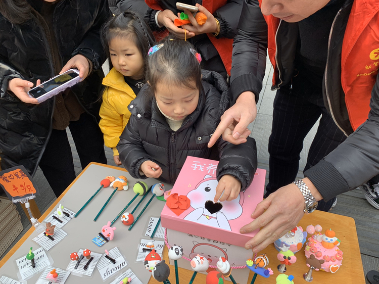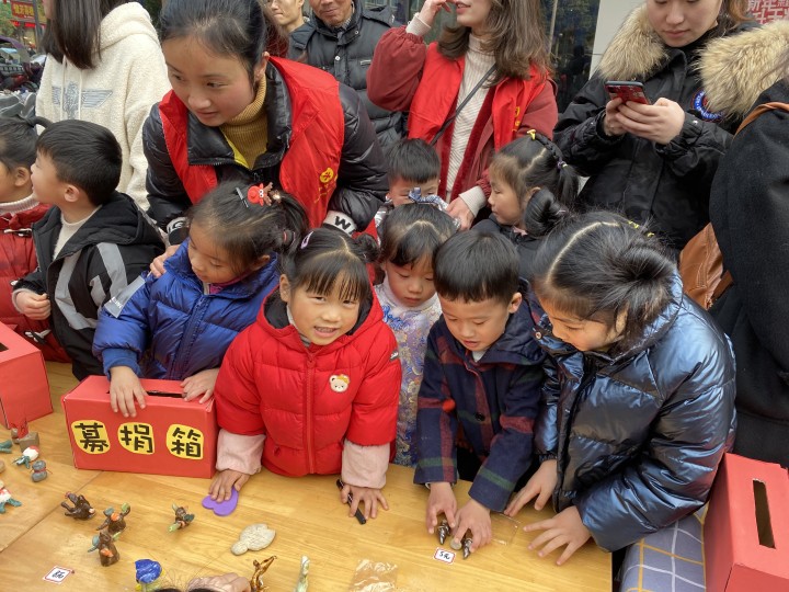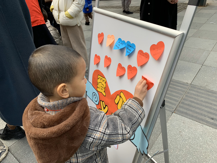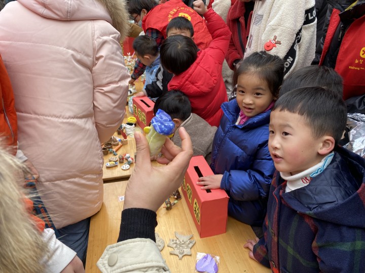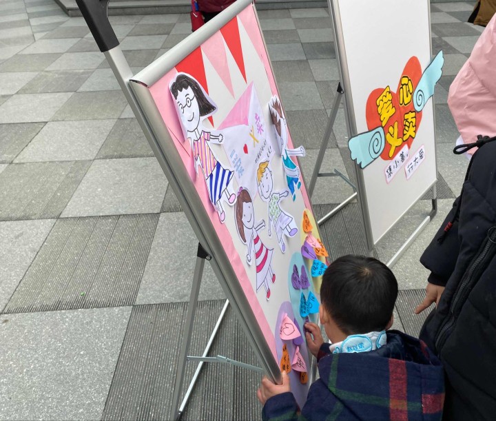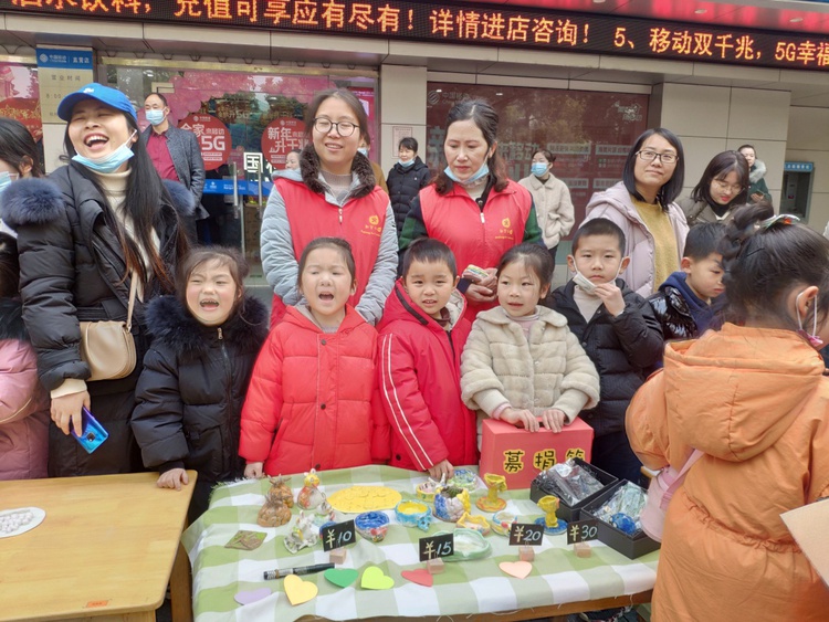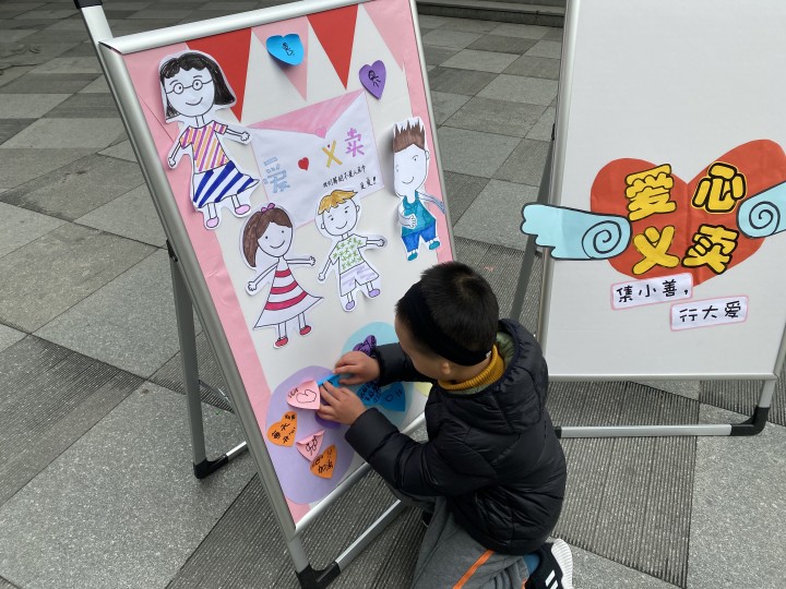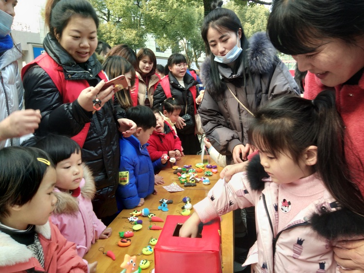 为了让幼儿从小树立关爱他人的意识,养成乐于助人、奉献爱心的良好品质,增加幼儿的社会体验与交往能力,帮助更多需要用爱来温暖、关怀、鼓舞和激励的人们,2020年12月19日,新登镇第二幼儿园第六届乐玩节爱心义卖活动在新登镇移动公司门口拉开了帷幕。 义卖风采 本次义卖活动的作品都是我们新登二幼的老师和小朋友们一起创作的陶泥、彩泥作品。作品类型多样、种类丰富,每一件作品都蕴含着大家的爱心。 小班段义卖 活动现场 小班的老师孩子们,用彩泥装饰铅笔、发夹等,使得原本简单的铅笔瞬间变得充满童趣和活力,孩子们也更是积极地叫卖着,“快来买呀!快来买呀!” 滑动查看更多 中班段义卖 活动现场 中班段的孩子们用陶泥制作了好看的各种挂饰、小动物等等,义卖的时候还会用好听的语言向客人介绍,各个班级的作品都十分畅销! 大班段义卖 活动现场 “你快看这个枪,金黄金黄的,很有威力哦,很适合男生的,你要不要买一个。” “这个蓝色的小杯子可以用来喝水,虽然小小的,但是很漂亮的,你要不要买一个呀!” “这个彩泥是我们班做的,这里有一个小洞洞,里面有很多漂亮的点点,你快买去吧!” 奉献爱心 左右滑动查看更多 左右滑动查看更多 一双双小小的手将爱心放到了一个个红色的爱心箱里,我们的爱就这样开始传递! 我的心愿 我的心愿是希望自己能够唱歌唱得很厉害,这是我画的一个话筒! 我的心愿是希望自己能够成为英雄,帮助更多的人,拯救世界! 我的心愿是能够快快长大,长大能做很多事情! 义卖活动结束后 由各班教师与家长代表共同清点本班义卖款项 所得义卖数额全部捐给 幼儿园困难户家庭 爱,无处不在 ○ 爱心,就在举手之间 ○ 奉献一片爱心 请留下你指尖的温度 让太阳拥抱你 与我们一路同行,与爱为伴~