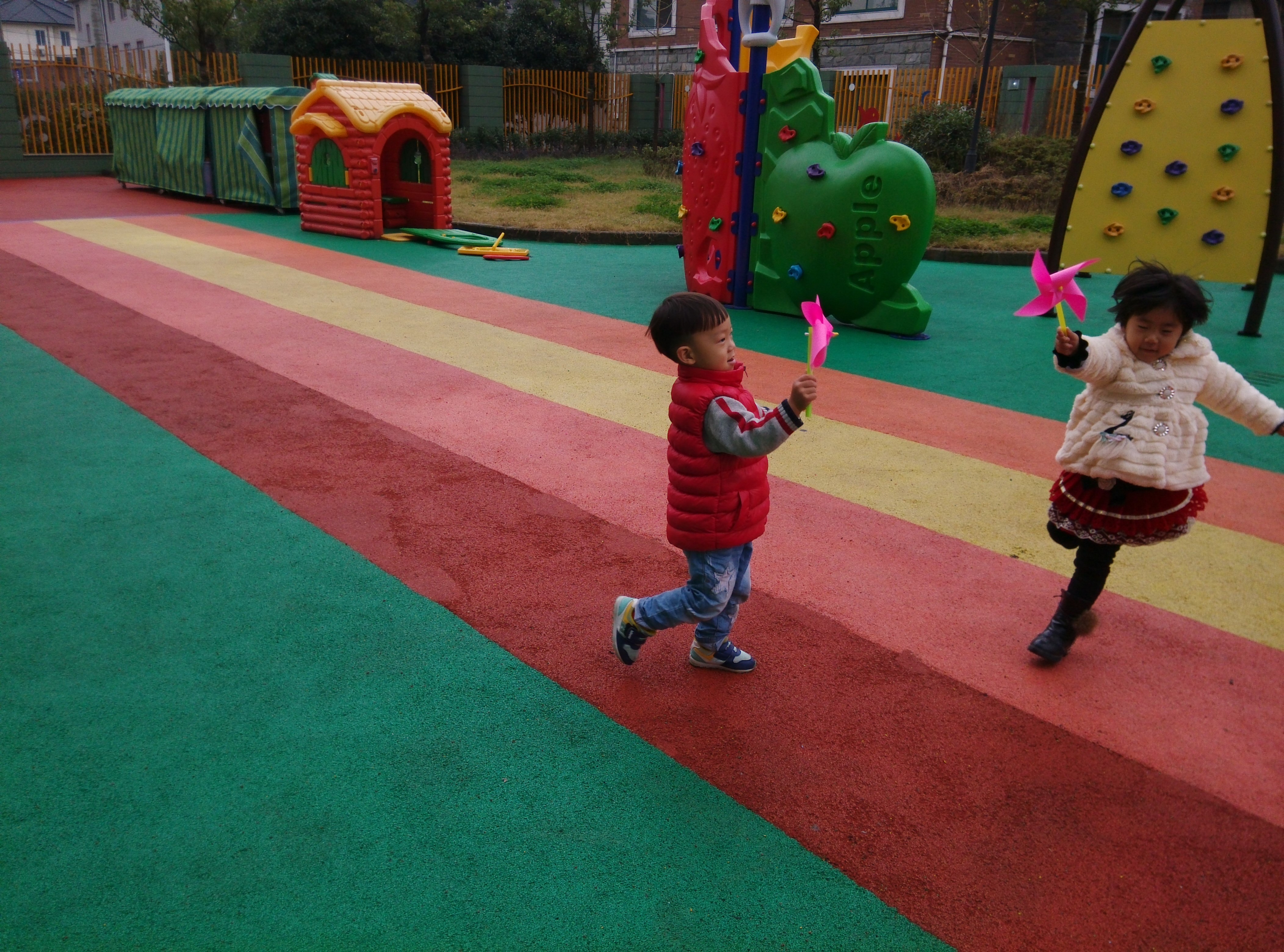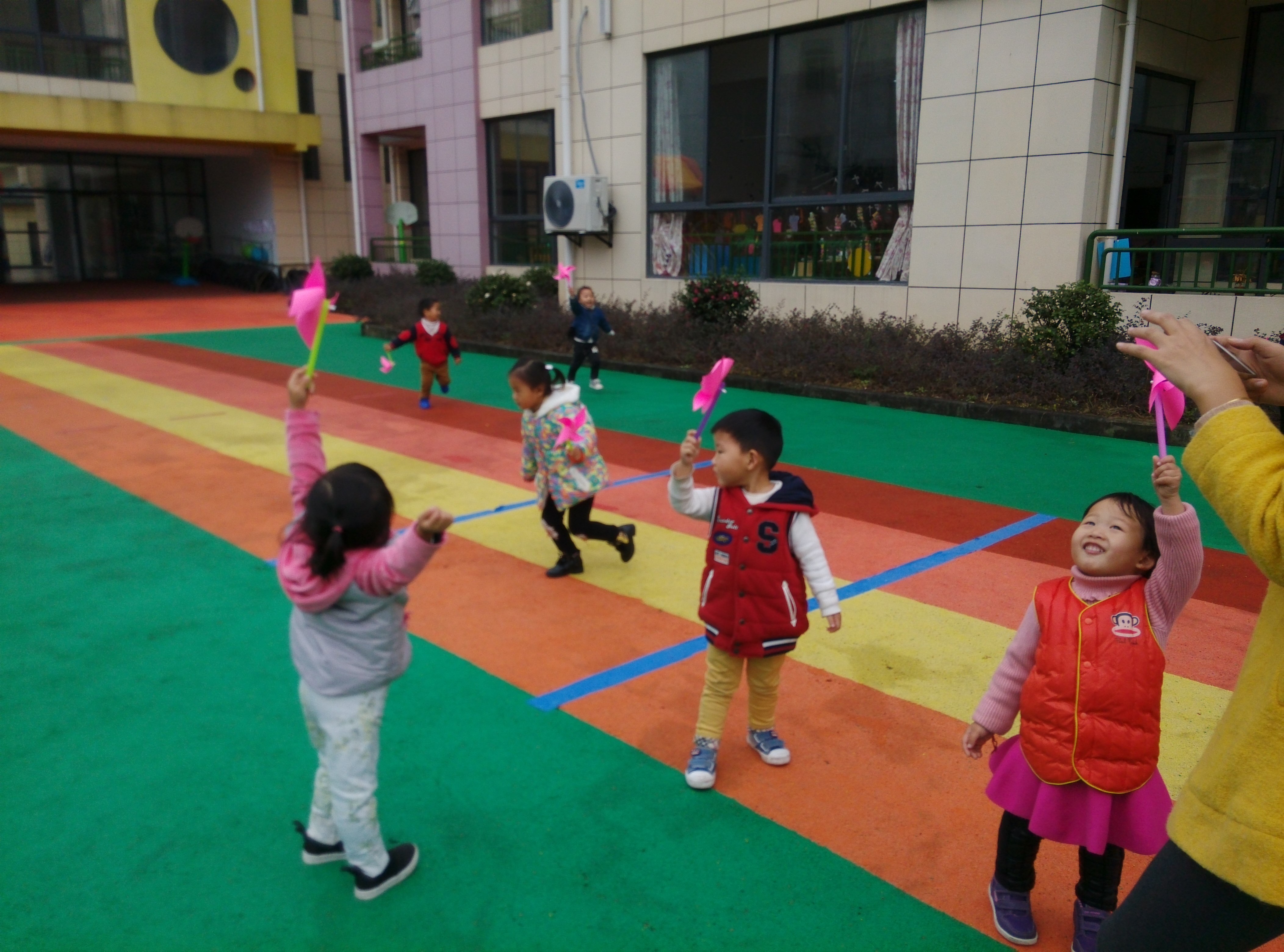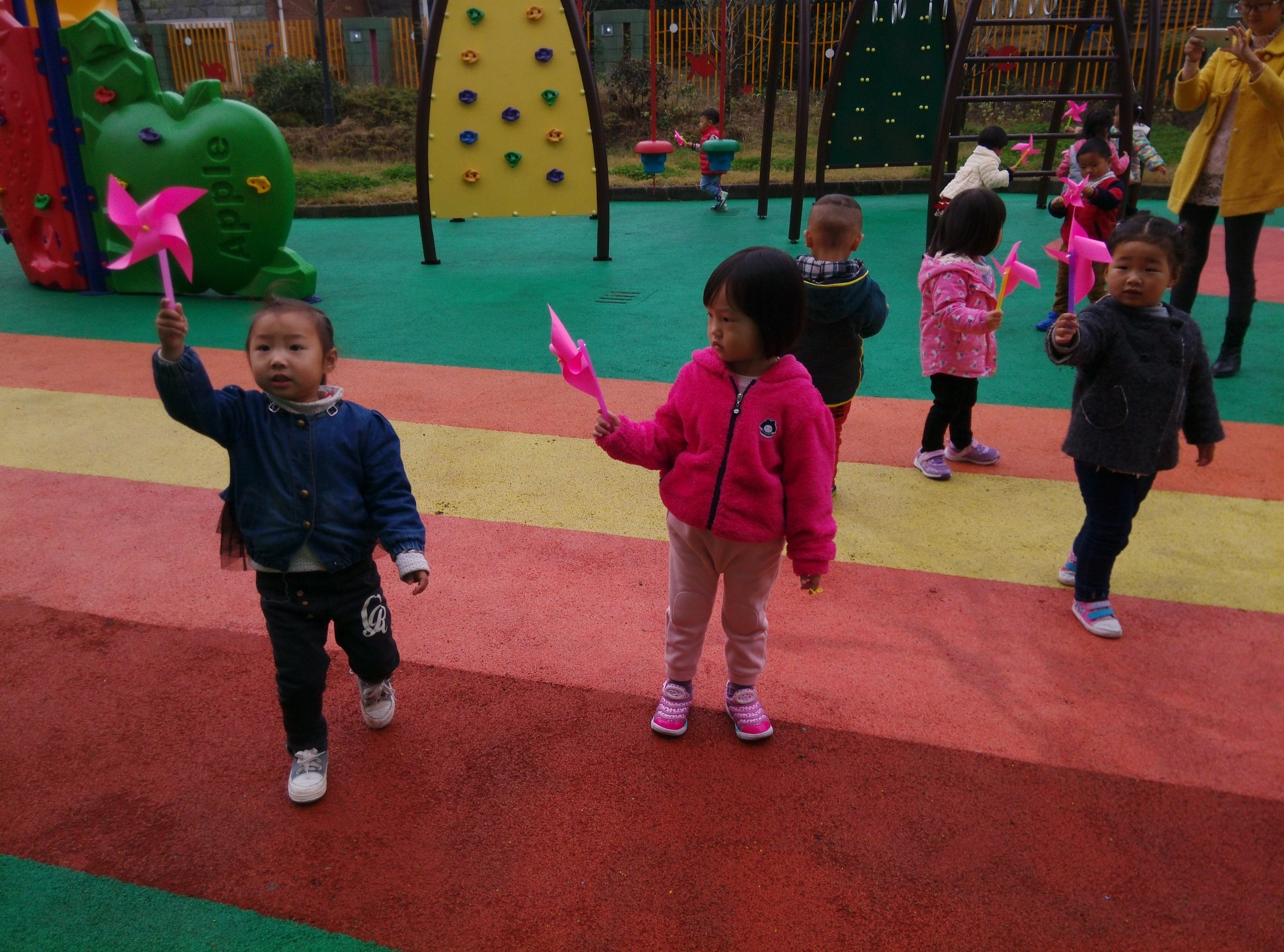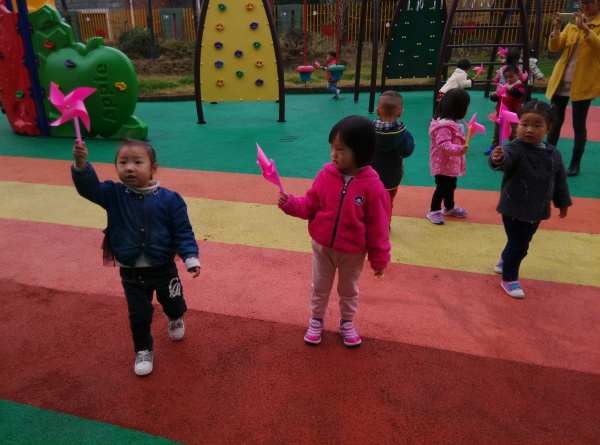 这些天一直下雨,孩子们在教室里都被憋坏了。老师什么时候好出去玩呀?这是孩子们问到最多的一句话。今天天气看着还不错,我们就做了一些小风车带着孩子们来到操场上,孩子么你开心极了。