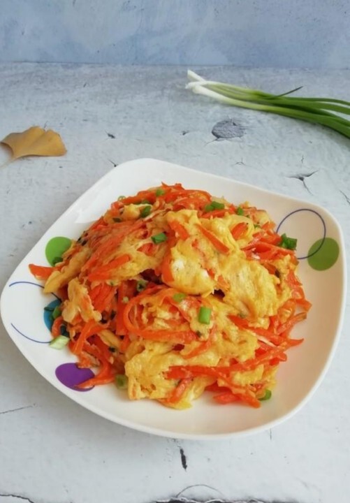 中餐:虾皮胡萝卜炒鸡蛋(病号餐:小肉丸)
