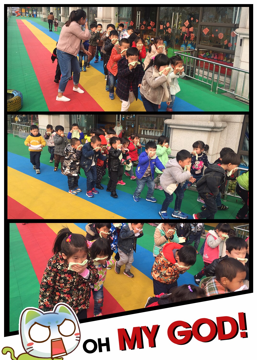 虽然这次只是一次消防演习,但是小朋友们都非常的遵守演习要求,听从教师的指挥。各班主任到达安全地点后迅速清点本班人数,并报告人员清单,确定无人“受伤”后,宣布疏散演习成功。这时小朋友才放下手里的毛巾,你一言我一语讨论着演习的过程,轻松愉快的回到了教室。