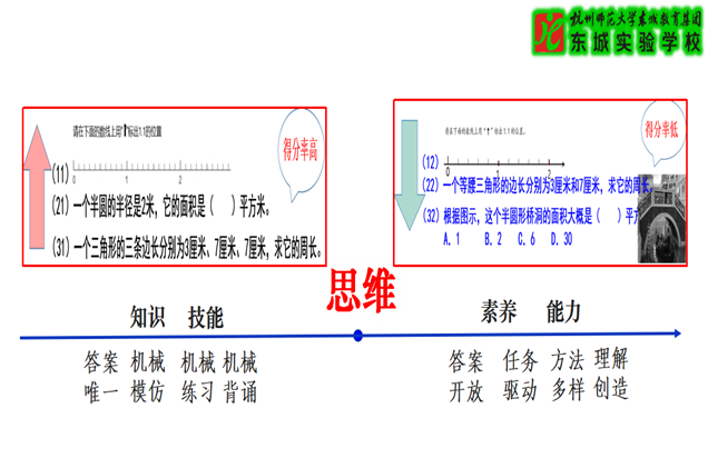 李校长着重用三组原题和改编后题目的对比,让我们理解了任务驱动类型和多样方法的题目更考察学生的素养和能力;从大量例题入手,阐述了如何用一道题考察多个知识点,从知识与技能转向思维与素养。