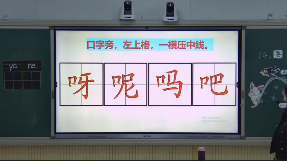 周老师将“吧、吗、呢、呀”这四个字组合教学,并且在教学的过程中让孩子们比较“口”的位置,结合关键笔画的标红范写,解决了学生在写字时遇到的难点。同时她还关注学生的书写姿势,以范例指正的方式,扎实推进学生写好字。
