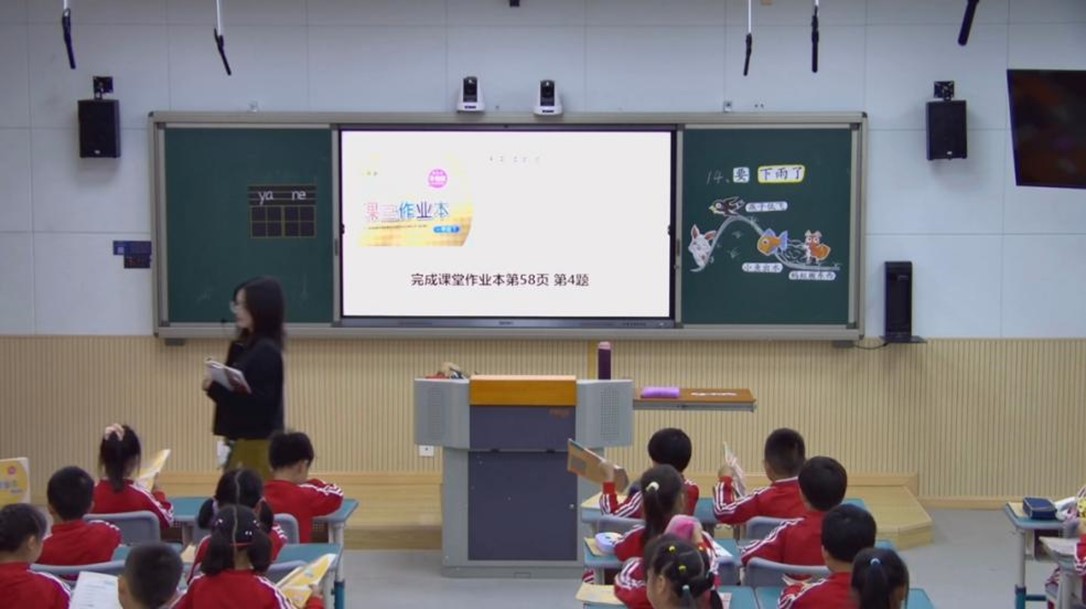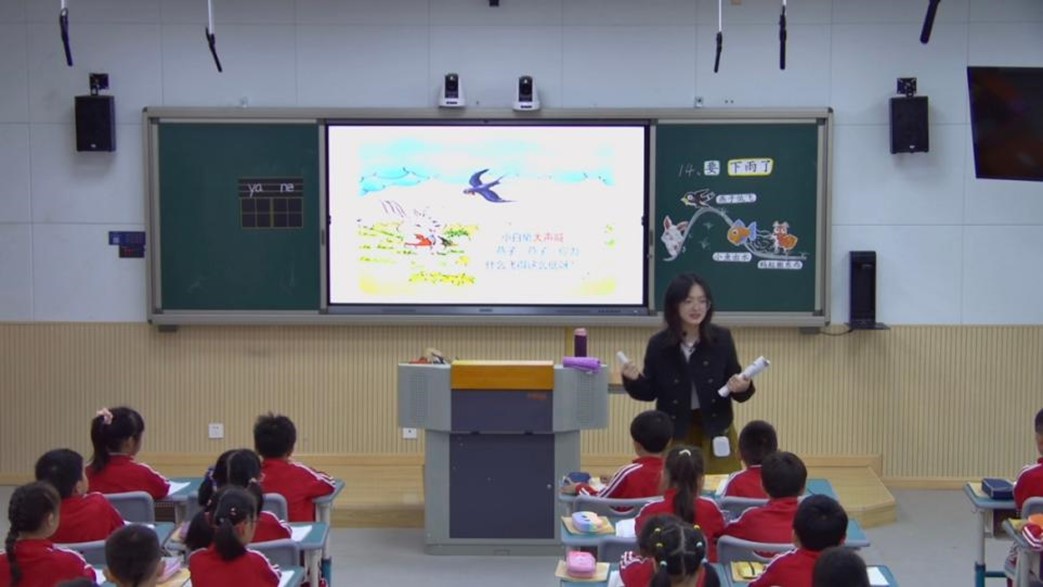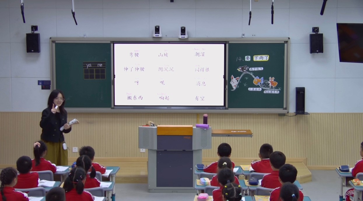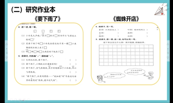 周老师的课堂亲切有趣,也十分注重教学策略的渗透,从区分“下雨了”和“要下雨了”这一巧妙的教学设计入手,为学生进入本课的学习做好了铺垫。