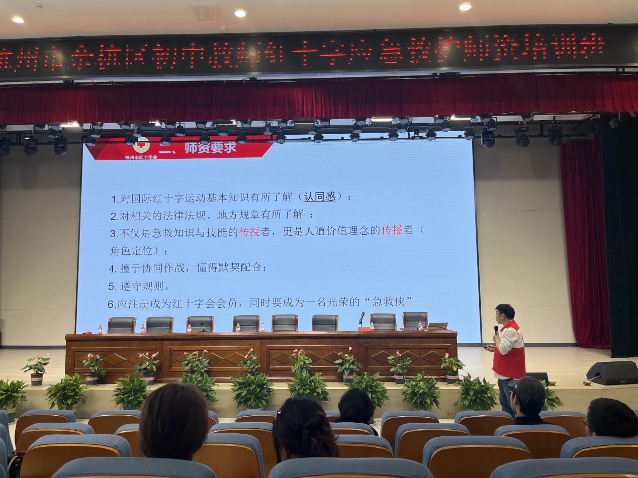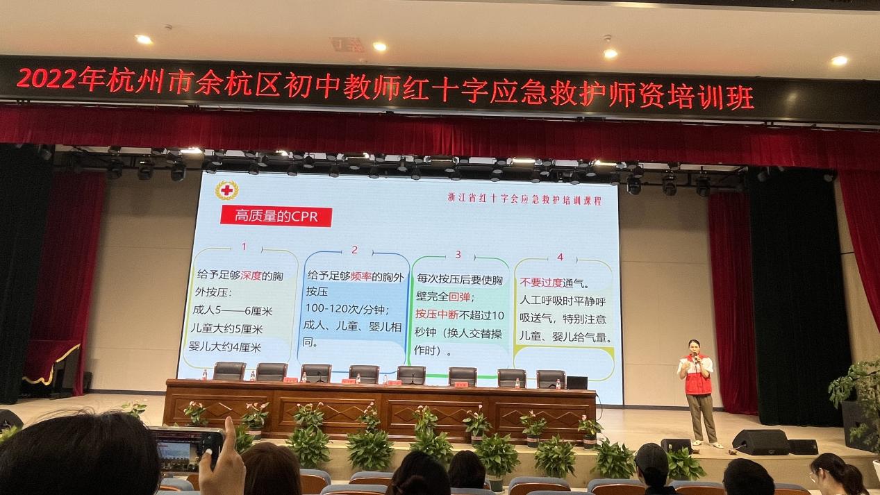 为进一步建设余杭区红十字应急救护培训师资队伍,提升师资队伍的综合能力和教学水平,切实保障余杭区应急救护培训工作再上新台阶。5月25日-5月29日,由余杭区红十字会和余杭区教育局主办的“2022年余杭区初中学校教师红十字应急救护师资培训”在我校举行,区内各学校教师积极参加此次培训。
