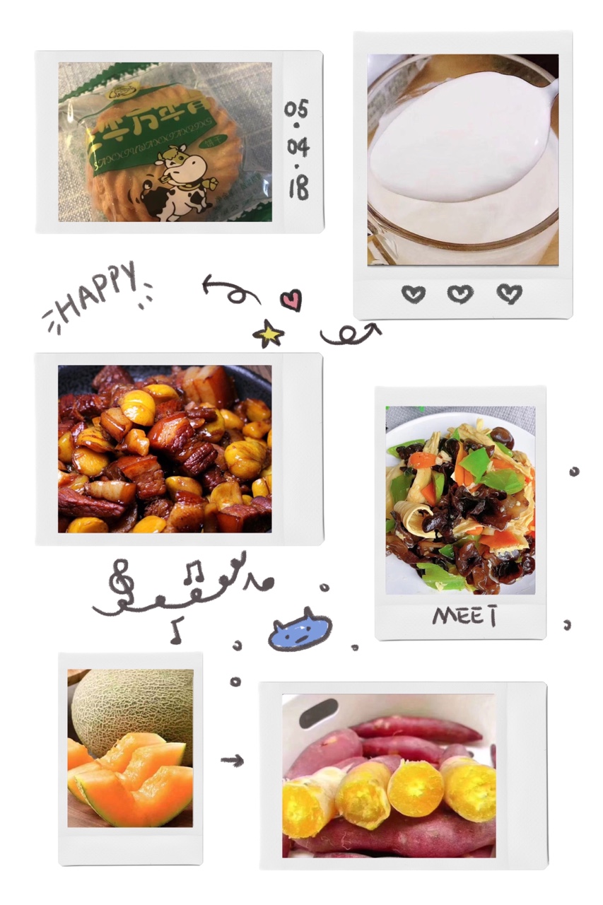 午餐:红烧鸡块、大白菜油豆腐、小米饭