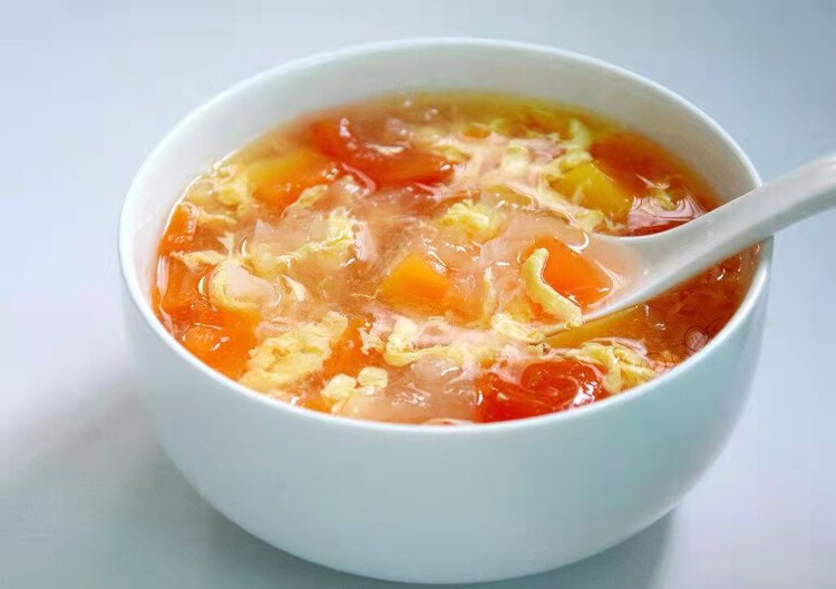 晚 餐:番茄炒蛋、茭白肉片、火腿菌菇汤、粳米饭