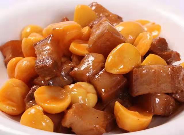 午 餐:栗子红烧肉、八宝鲜蔬、海带汤、粳米饭