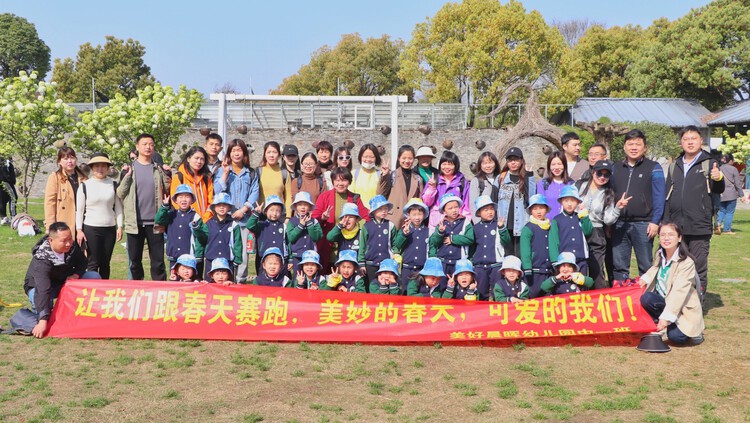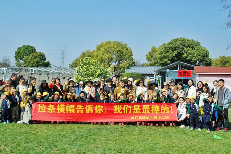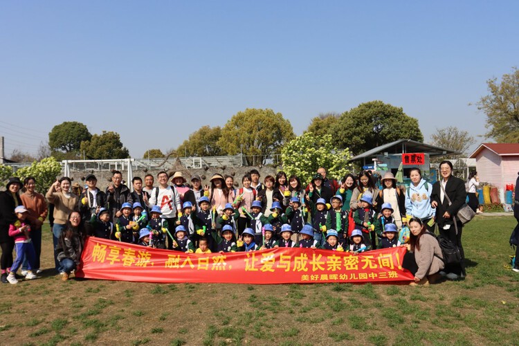 此次我们的春游目的地是海宁的瑞趣桃园。到达目的地,中一班、中二班、中三班三个班级拉着自己班级的横幅标语拍了集体照