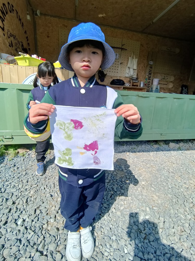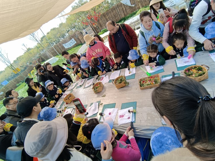 植物是孩子们们身边常见的创作素材,孩子们通过收集、观察、组合拓印树叶的这一过程,和大自然融为一体,感受大自然的美。