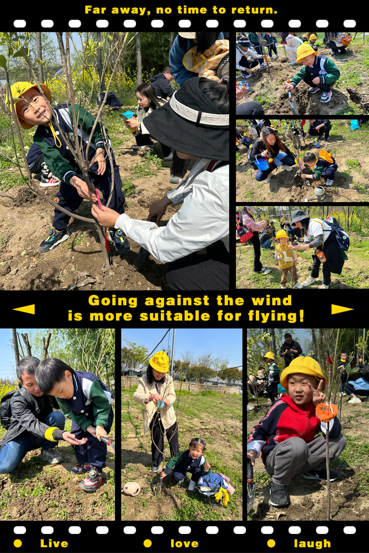 春回大地风光好,植树添绿正当时。一颗小小的种子,也可长成参天大树。种下一株树苗,播下一份希望。小朋友们在爸爸妈妈的指导下,栽中树苗,为小树浇水。最后写上自己的心愿,挂在自己的小树苗上。
