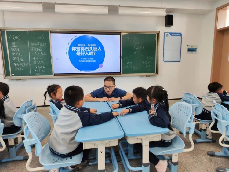 4月12日下午,国内知名哲学家、厦门大学博导、哲学教授曹剑波以及博士后黄睿、浙江大学安冬博士等人,来到学校开展儿童哲学教育的指导和研讨。黄睿博士给孩子上了一堂《石头巨人是好人还是坏人》儿童哲学示范课。尊重儿童、平等对话、富有思辨的课堂氛围深深地感染了听课观摩的老师,更是给天空的孩子带了一堂儿童哲学学习的盛宴。