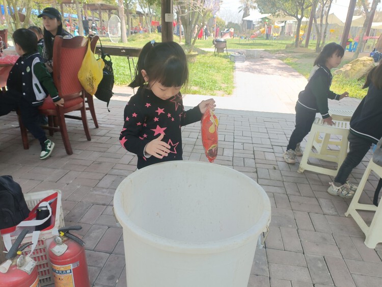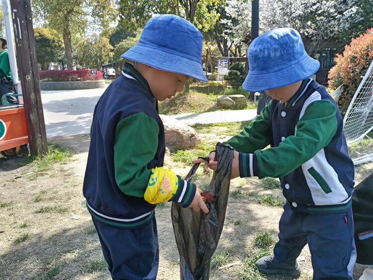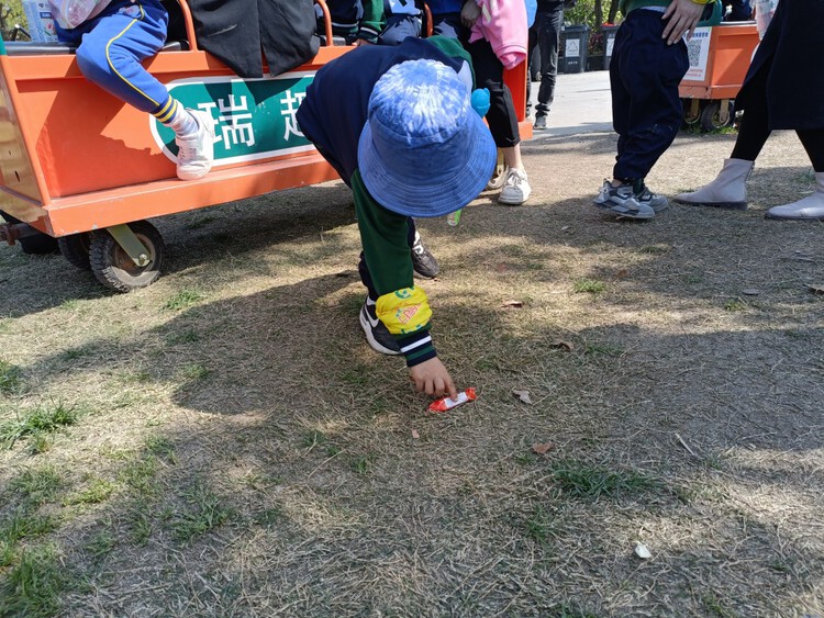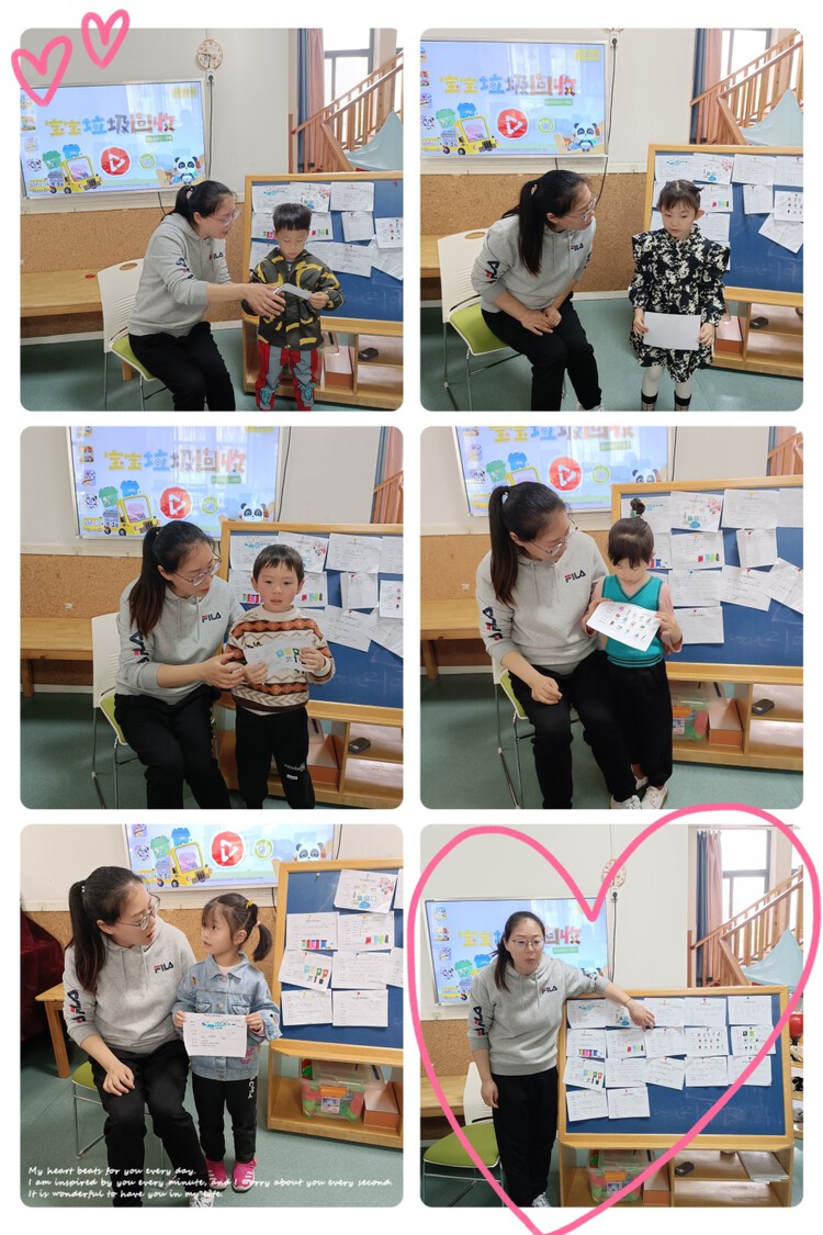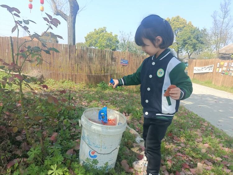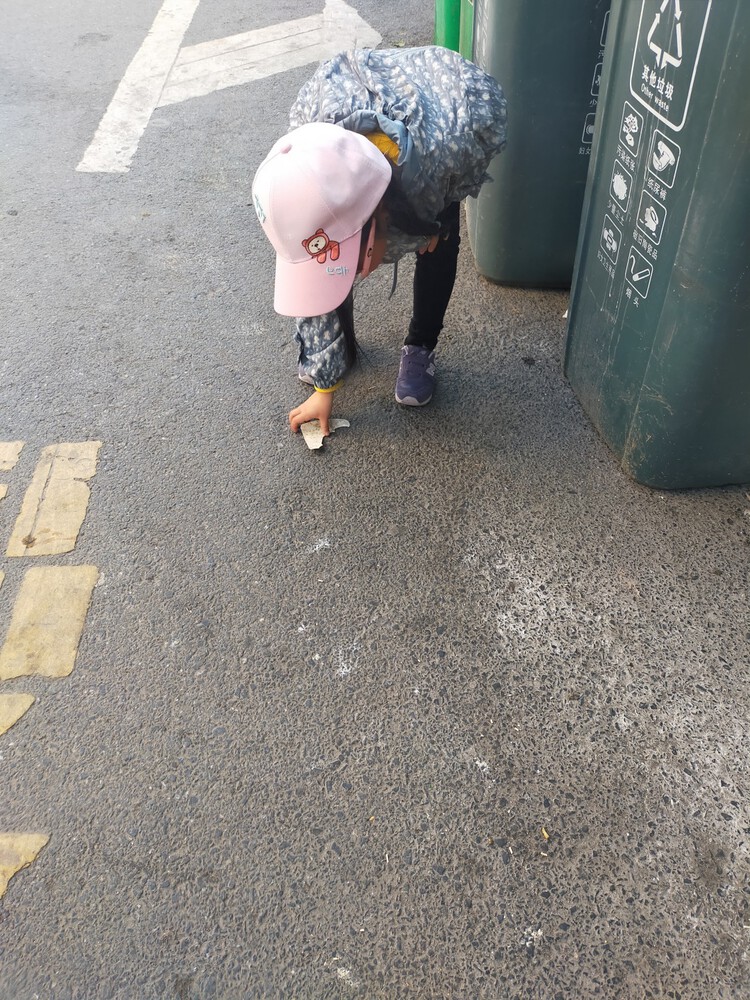 孩子们不但在课堂上学习垃圾分类的知识,在生活中也是付诸行动,看!宝贝们把地上垃圾捡起来扔到了垃圾桶里。