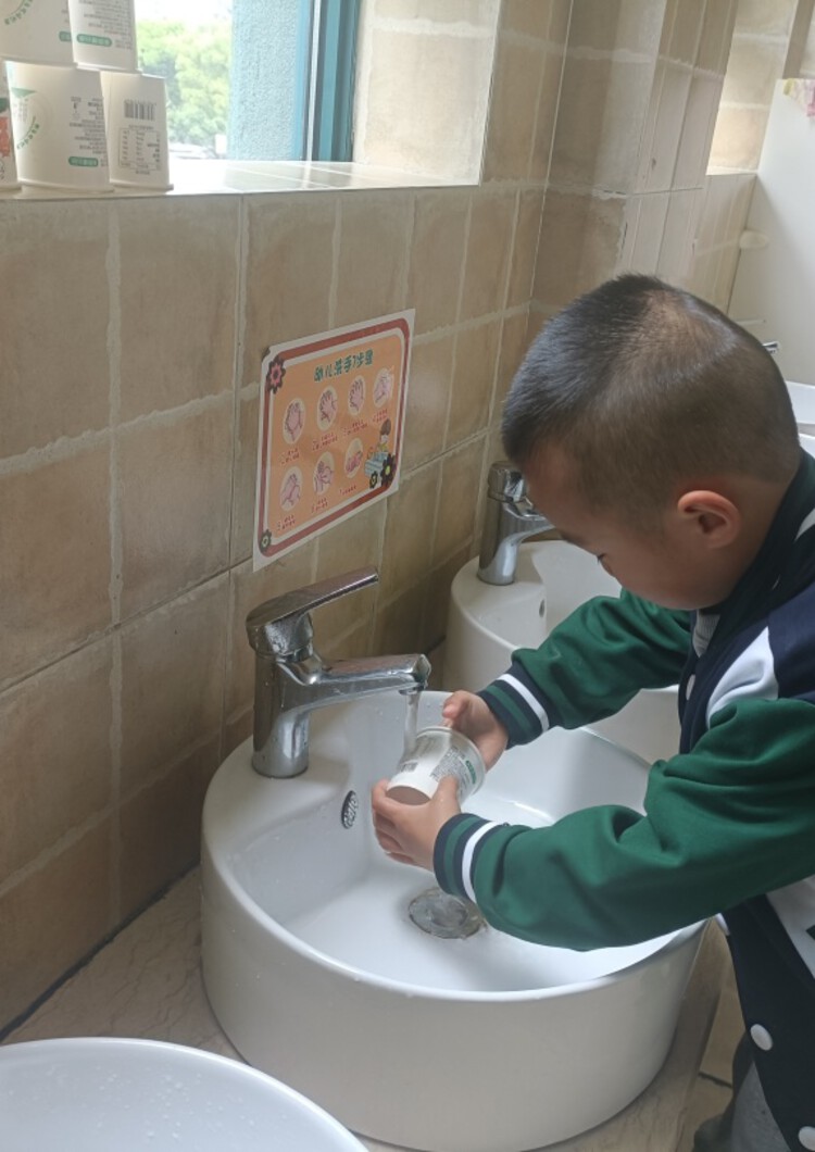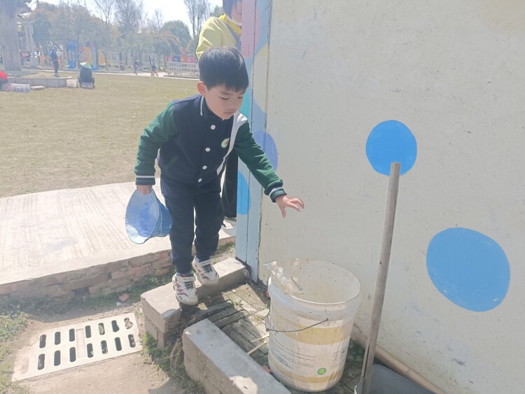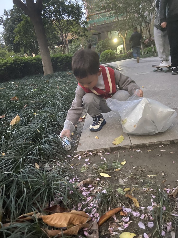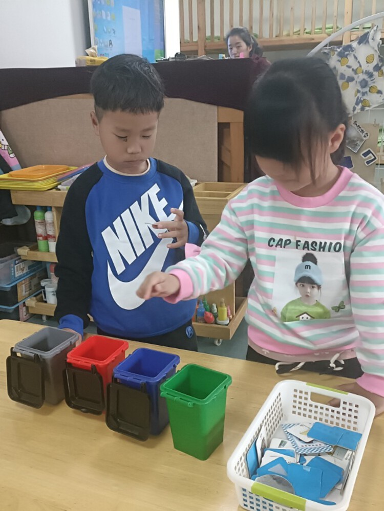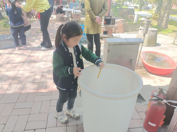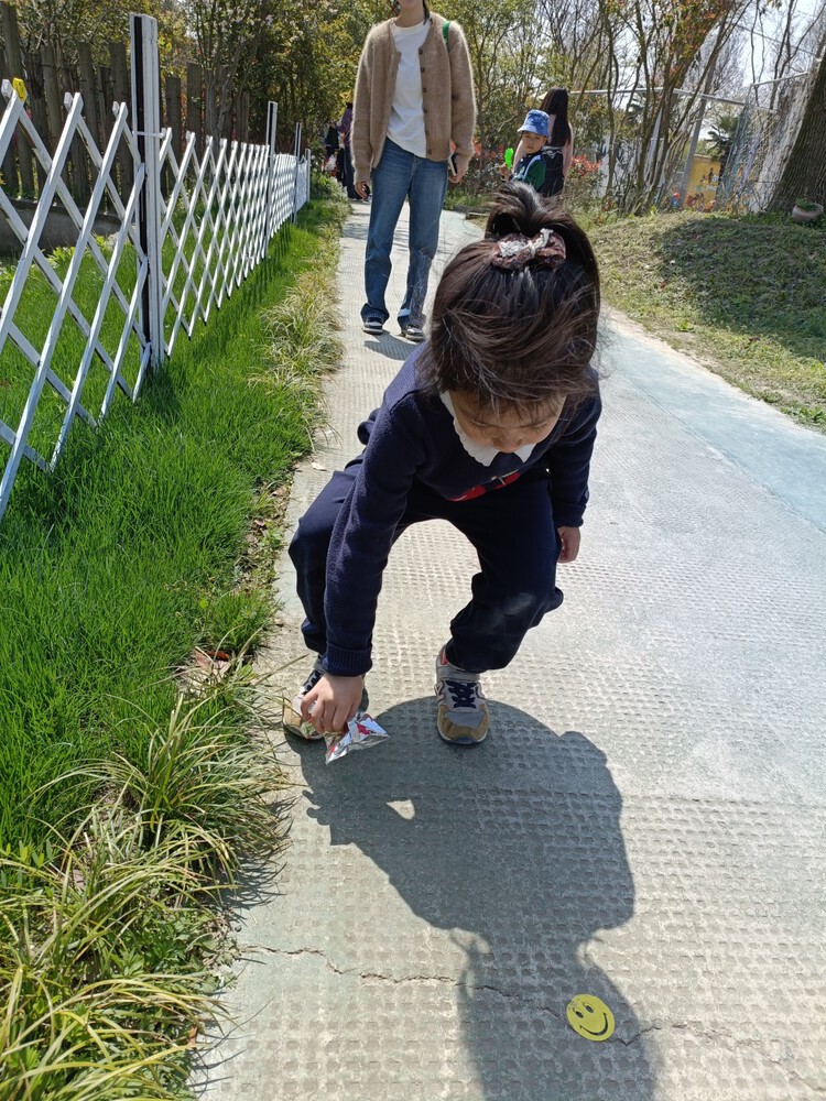 孩子们不但在课堂上学习垃圾分类的知识,在生活中也是付诸行动,看!宝贝们把地上垃圾捡起来扔到了垃圾桶里。