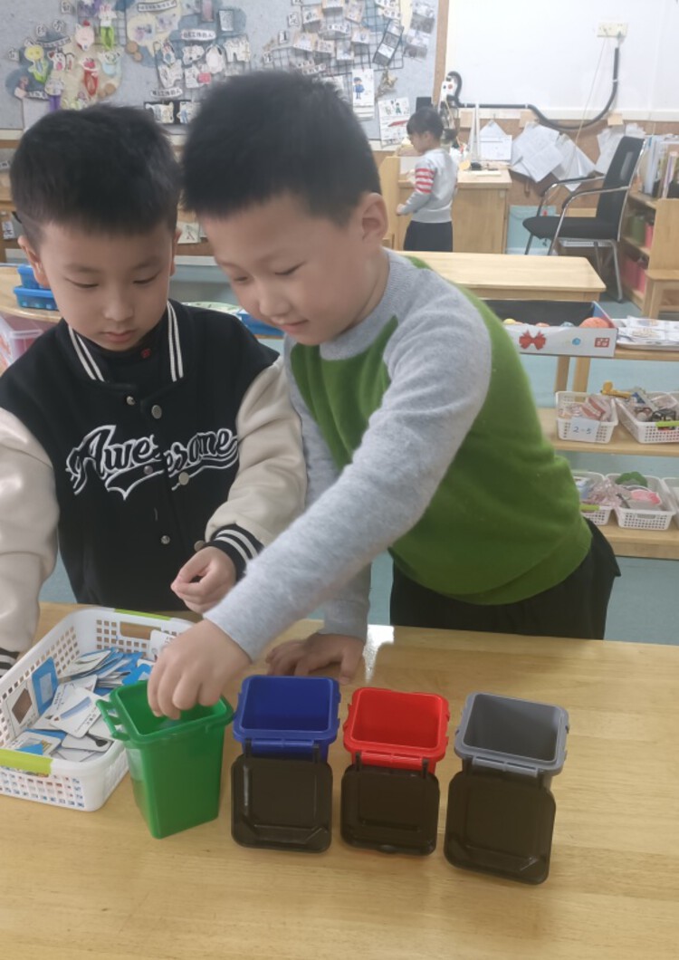我们通过绘本学习、垃圾分类、认识垃圾桶标志等游戏活动结合每日实践与总结等等一系列活动,了解了“垃圾为什么要分类”“分几类”“垃圾如何分类”等问题。