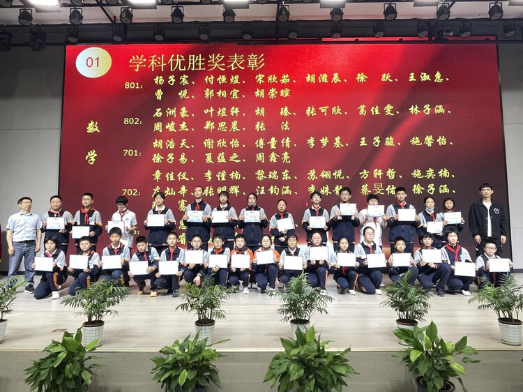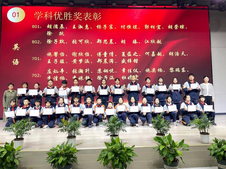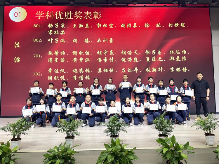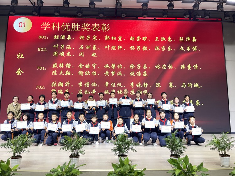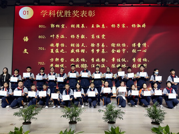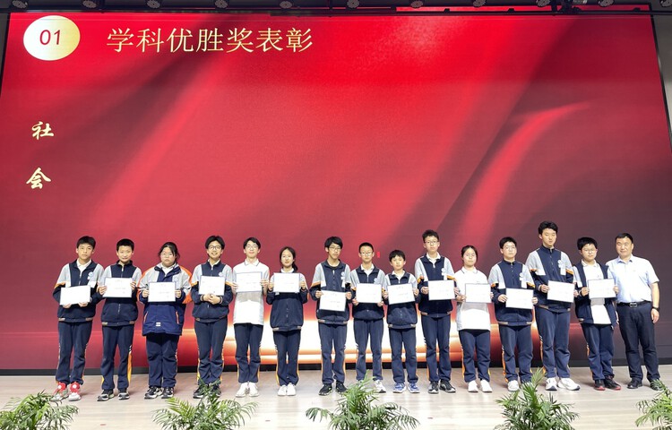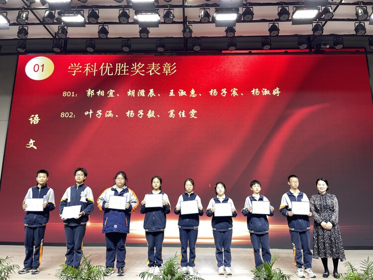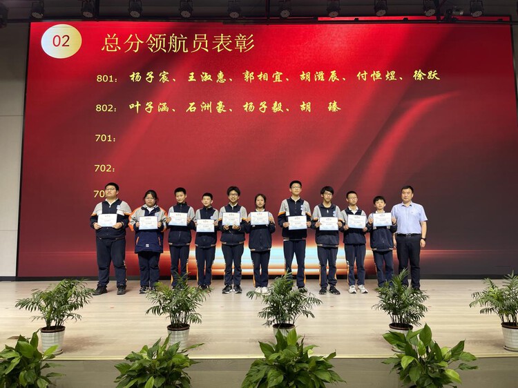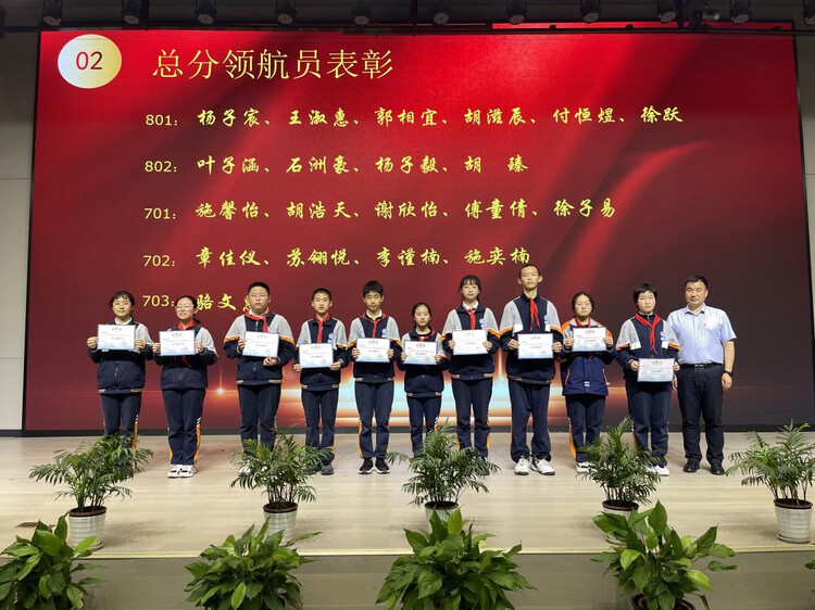 荣耀是青春的赞歌,每一个音符都闪烁着青春的光芒。在主持人姚老师慷慨激昂的介绍中,我们将目光投向了此次期中考试表现突出的同学们,他们凭借着自己的努力获得了优异的成绩,唱响了自己的青春荣耀之歌。本次表彰共设“总分领航员”、“学习进步生”和“学科优胜奖”三个奖项,获奖情况如下: