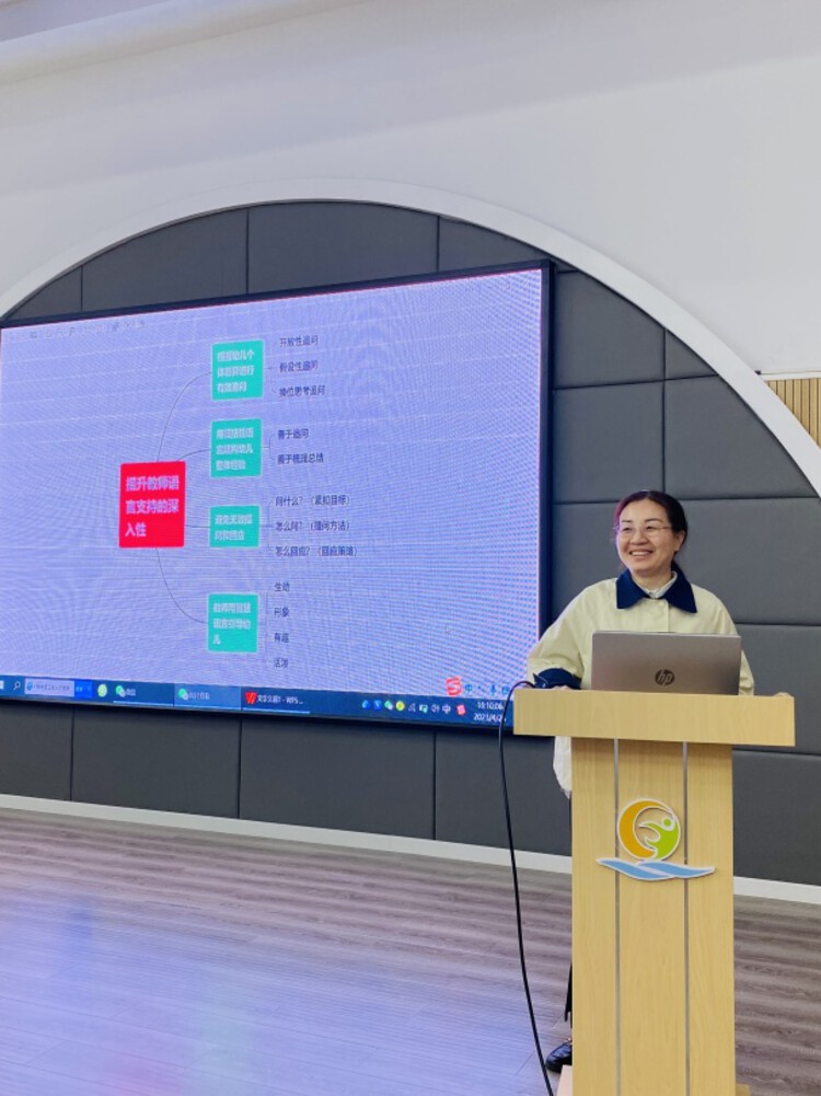最后,老师们将培训所学应用于自己的现场研修中。通过师幼互动园本研修的开展,老师们将自己的观点以思维导图的形式进行分享,更好地将教师们的智慧进行了逻辑性、系统化的呈现,大大提升了研修活动的有效性。