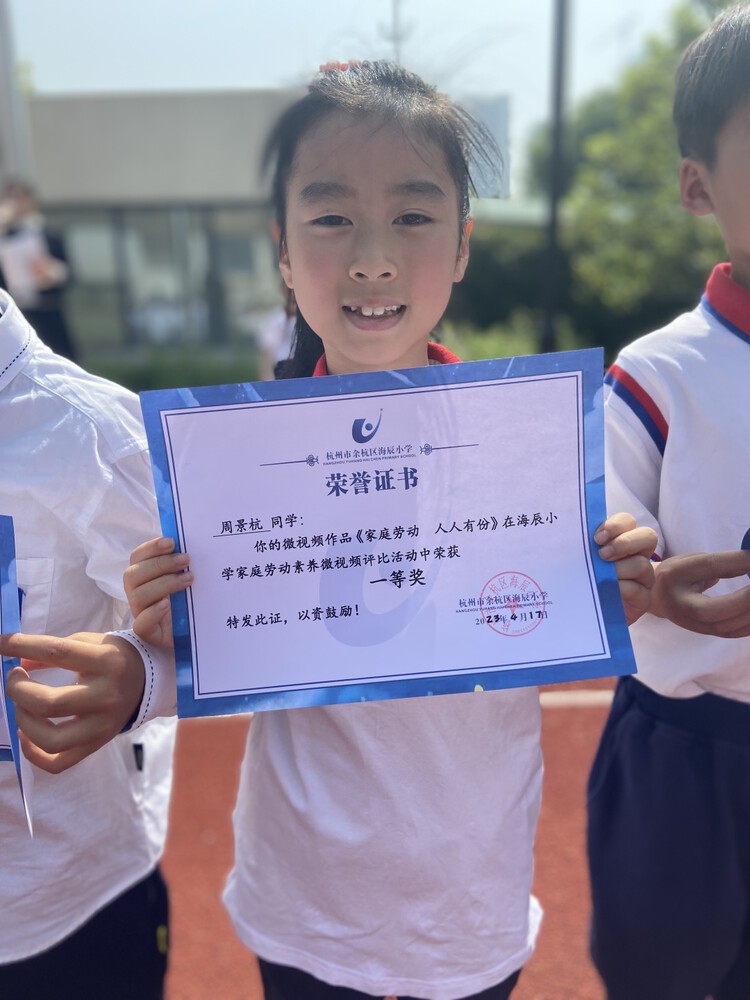 当然,最开心的还是这一次,我能在学校的故事大赛中“杀”出重围,并且代表海辰小学去参加“非遗少年说”故事大赛。果然,时光不负努力,在每天坚持不懈地练习下,在李老师耐心的帮助中,最终获得了余杭学区一等奖的好成绩。