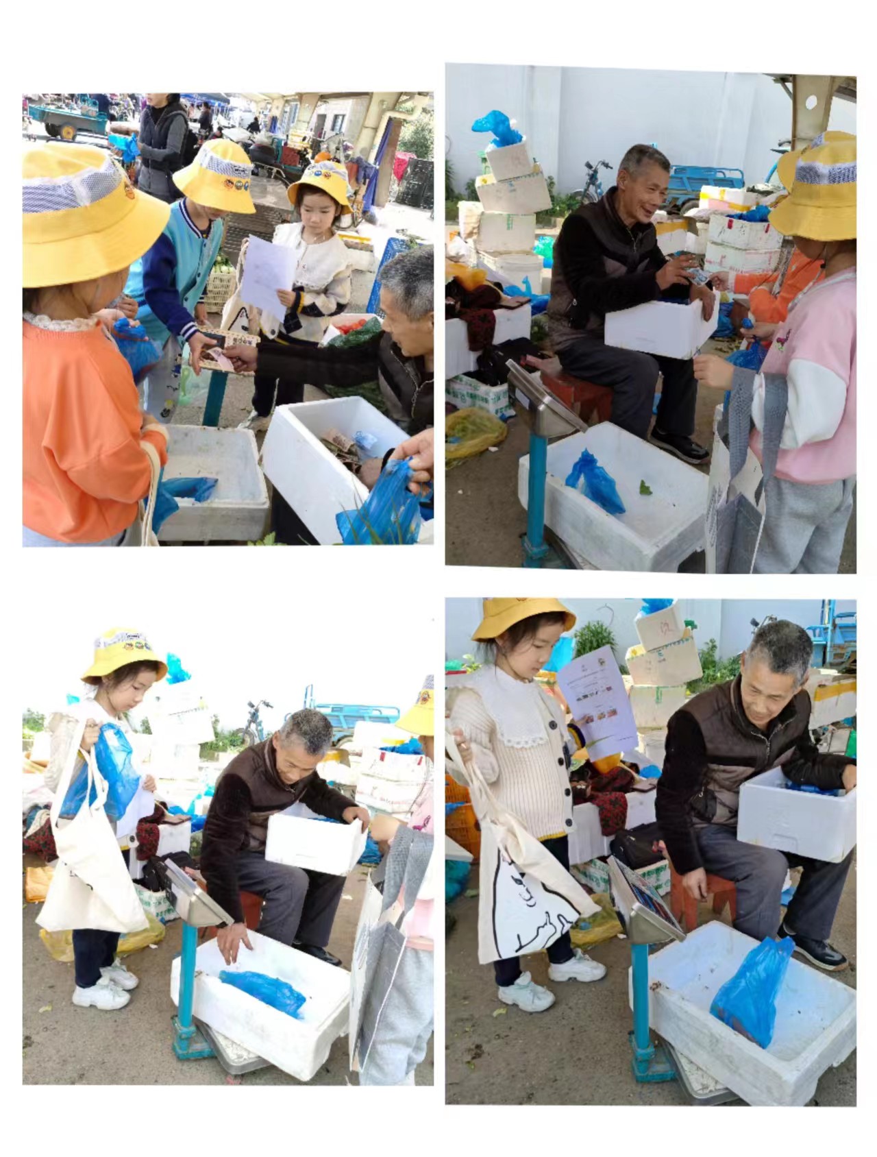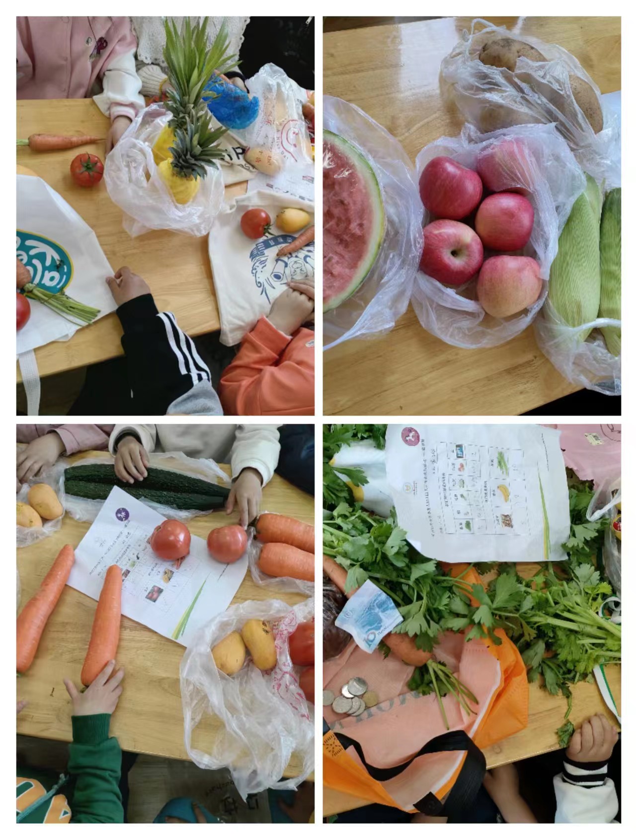 采购结束,收获满满,孩子们了解了菜市场不仅有菜也有各种的肉和水果,一起来看看小朋友们的收获吧!