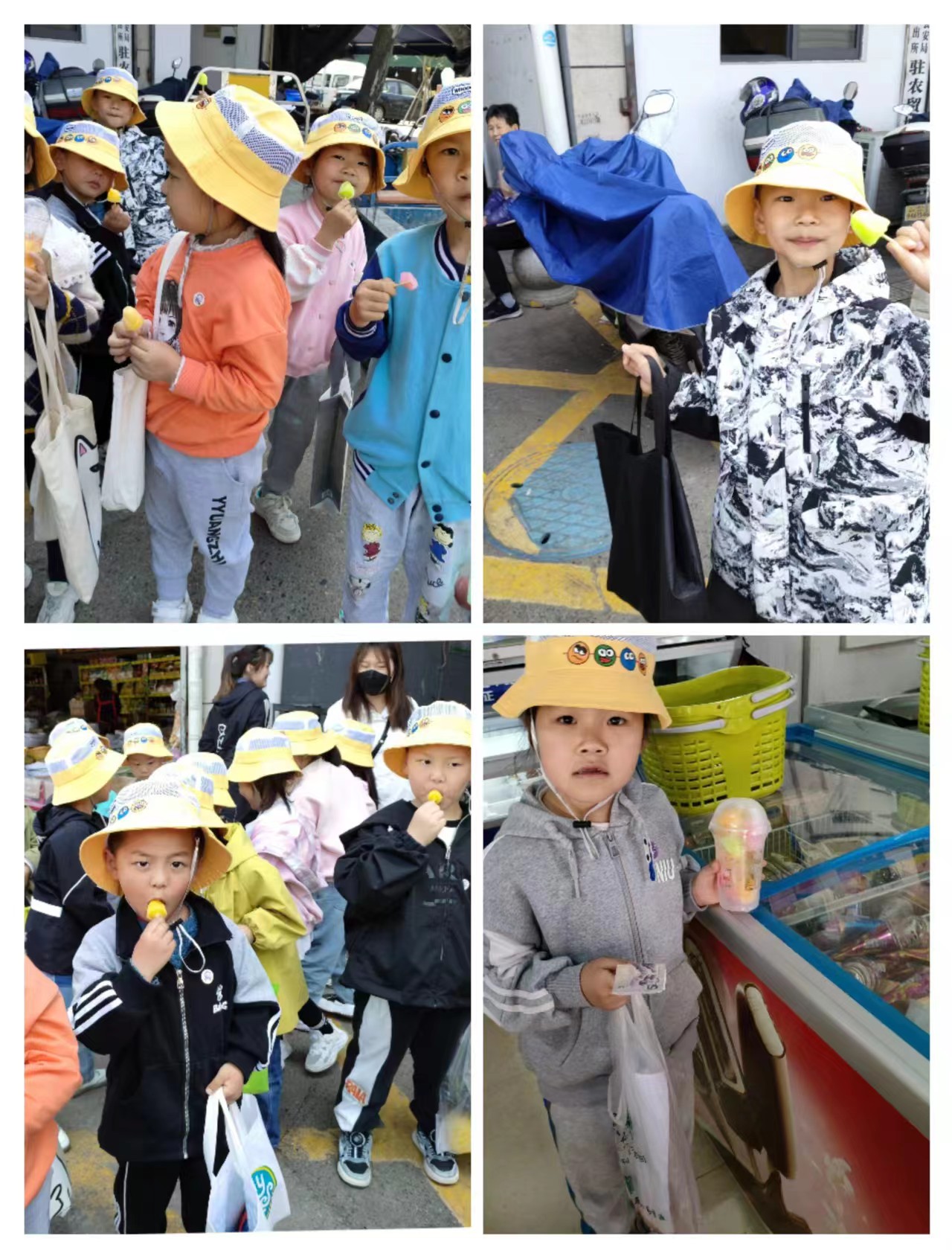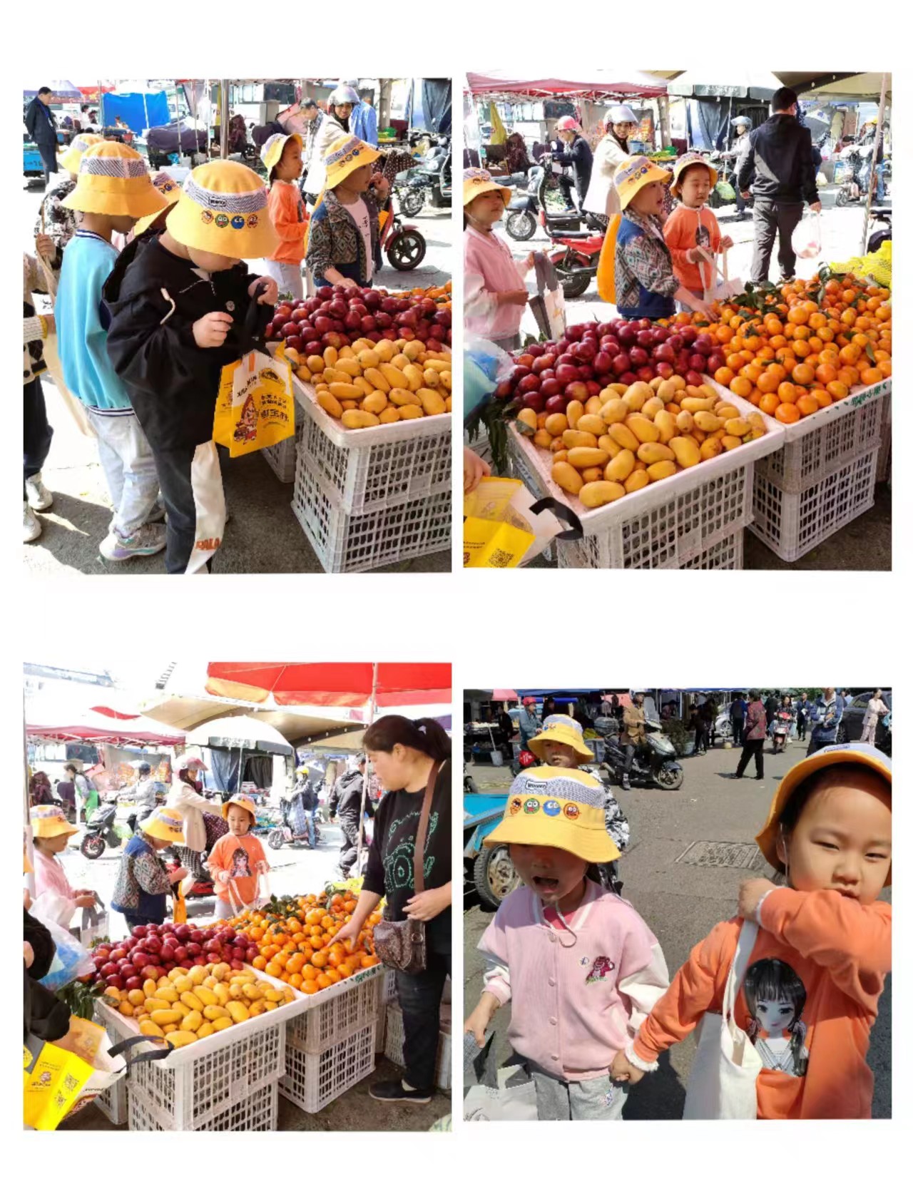 一路上,孩子们有序不乱跑,在老师和家长的组织下向着目的地菜场进发。