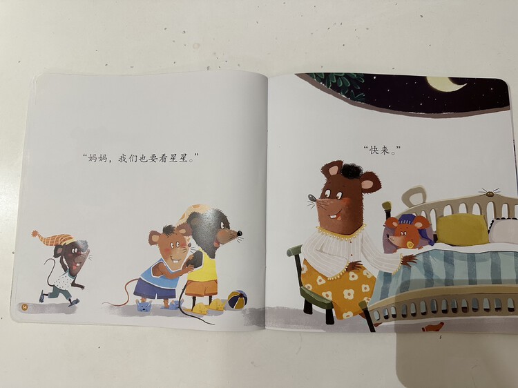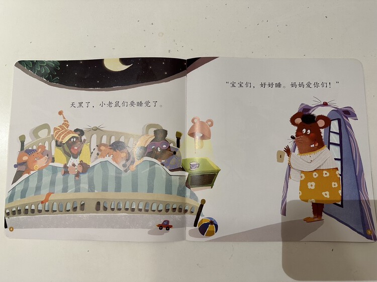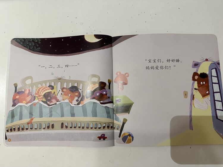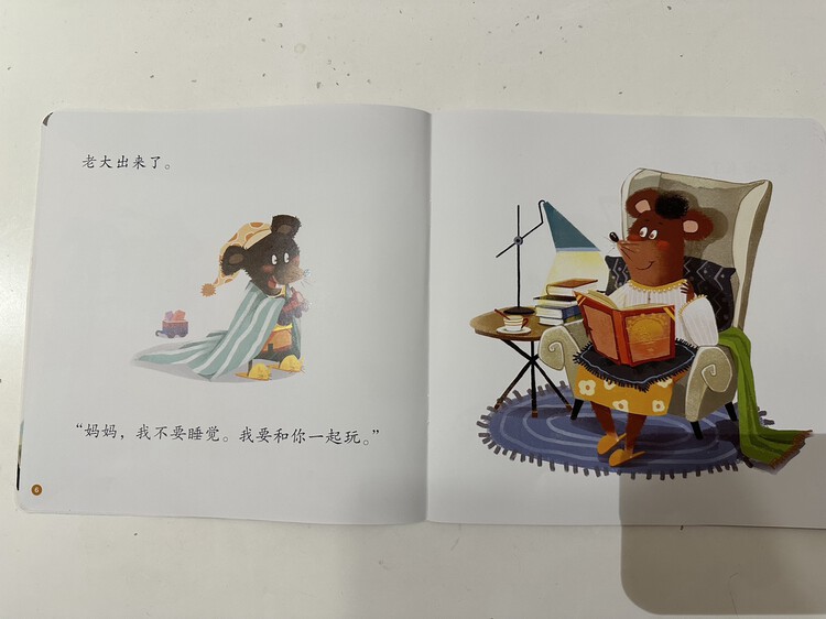 《小老鼠不睡觉》中睡不着的小老鼠就像是睡不着的孩子,他们睁着大眼睛的模样让人忍俊不禁,智慧的妈妈用爱包容着自己的孩子们,巧妙地陪伴孩子们入睡。愿孩子听完这个故事后,和小老鼠一起,带着微笑与美好安然入睡。