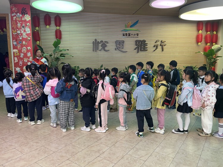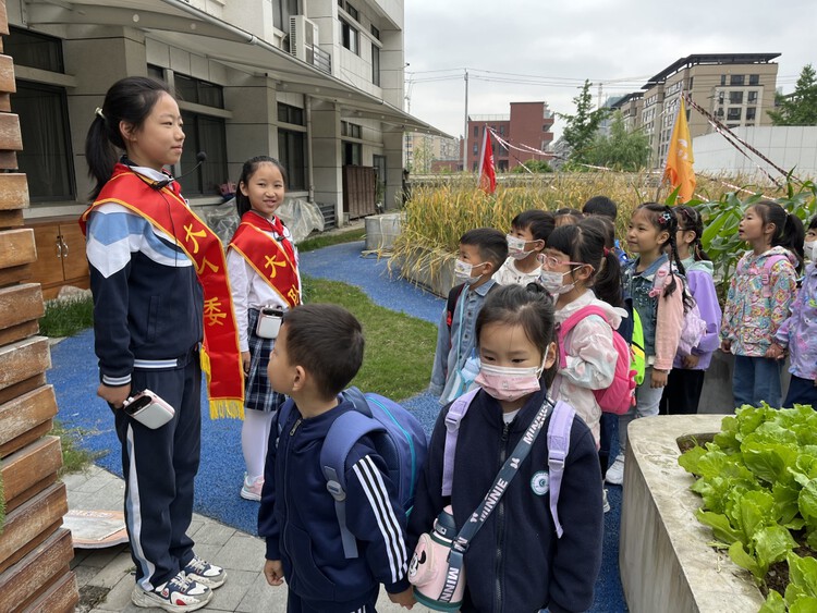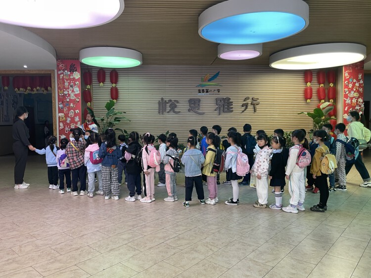 校园讲解员为孩子们讲解了富春八小的文化。孩子们听得非常仔细。