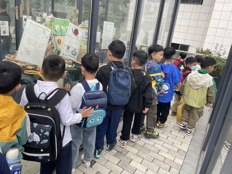 孩子们参观了科技园,被哥哥姐姐的科技作品所吸引。
