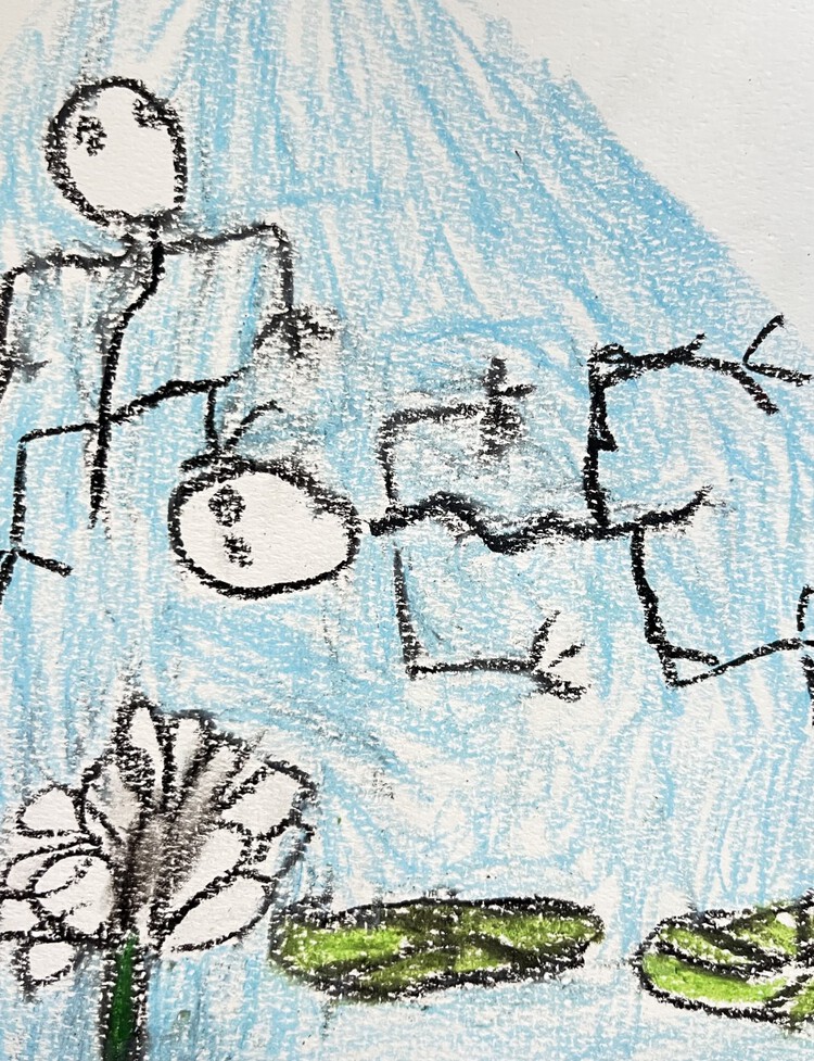 孩子们每天观察喂养着小蝌蚪,盼望着它长大,直到有一天……发现放入鱼食、菜叶的桶里,水变得浑浊,好几只小蝌蚪都平躺在水里,一动也不动。