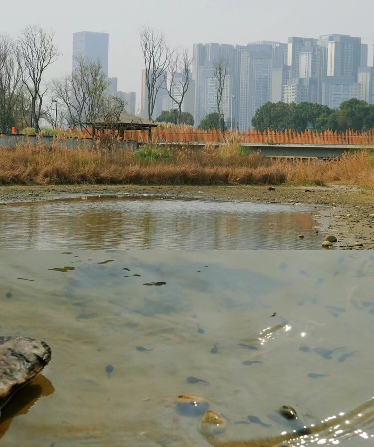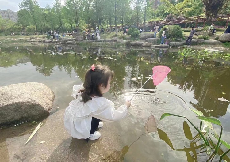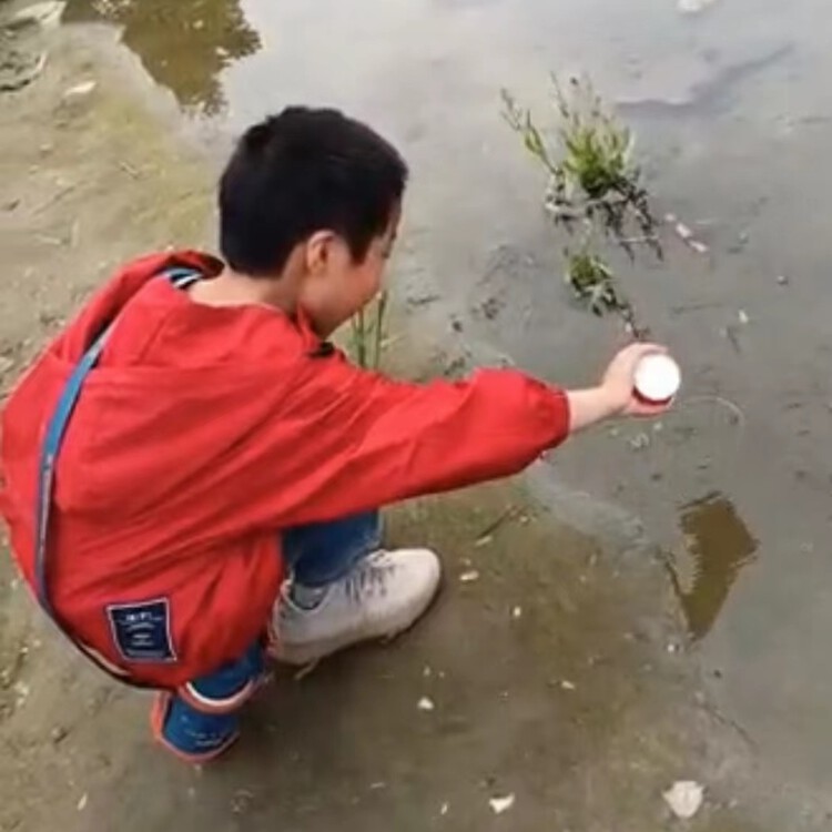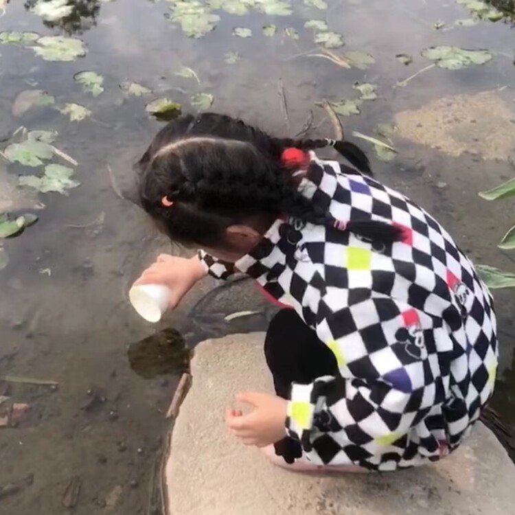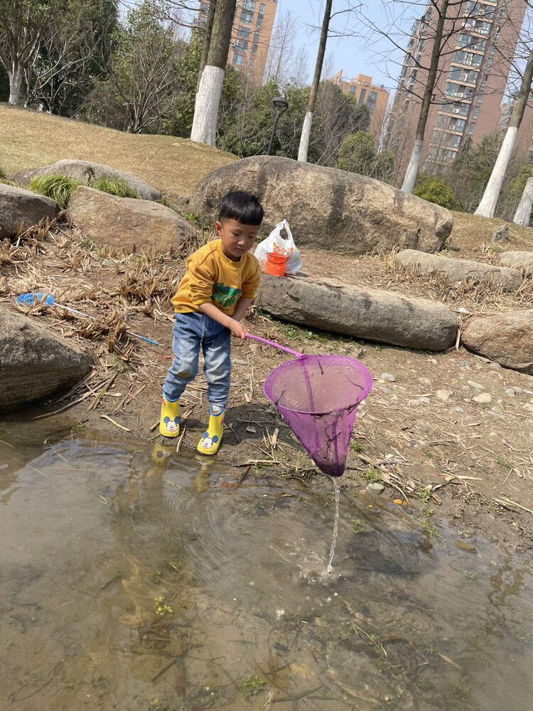 孩子们和爸爸妈妈一起在河边、池塘里发现了小蝌蚪的踪影。