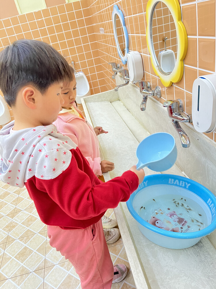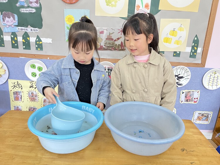 小朋友请家长、老师一起查阅各类资料。最后发现,饲养小蝌蚪最需要注意的就是水质,时间久了的话水就会变浑浊,底下会有很多小蝌蚪的排泄物,不利于小蝌蚪的生活,所以最好的办法就是经常换水,3-5天换一次水,而换水的时候不需要全部倒掉,留一小半再将新的自然水放进去。