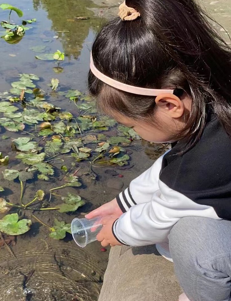 在《神奇的小蝌蚪》之旅中,我们充分利用季节的适宜性,尊重孩子的兴趣爱好,让孩子的好奇心和需求得到的满足,孩子们在观察、照顾小蝌蚪再把小蝌蚪送回家这一过程中,学会正确认识和看待生命,知道要爱护大自然的生物。