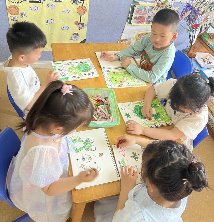 孩子们设计出了自己心目中的小蝌蚪,并与同伴分享了这份快乐!