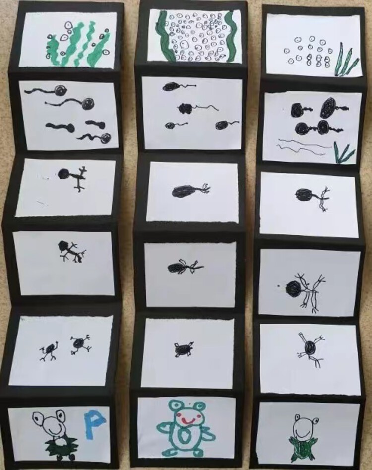 孩子们发现了小蝌蚪的许多小秘密,知道每到春天,青蛙妈妈产下卵宝宝就会离开它,慢慢长大的小蝌蚪就会出发去找它们的妈妈,小蝌蚪妈妈会是鲤鱼吗?会是乌龟吗?
