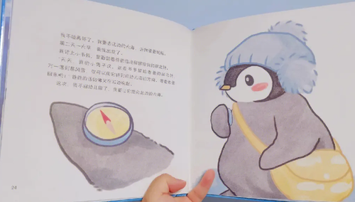 在绘本中,在探险的过程中,天天结识了并很终成为了只到达北极的企鹅。人生就像一段旅程,总有旅伴要离开我们。希望我们的孩子能够像企鹅天天一样勇敢、坚强,不怕困难,挑战自我,勇往直前!