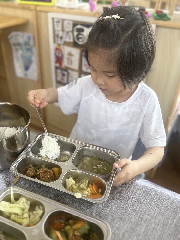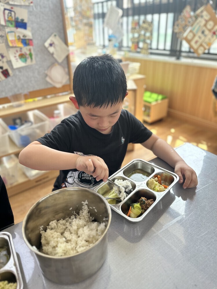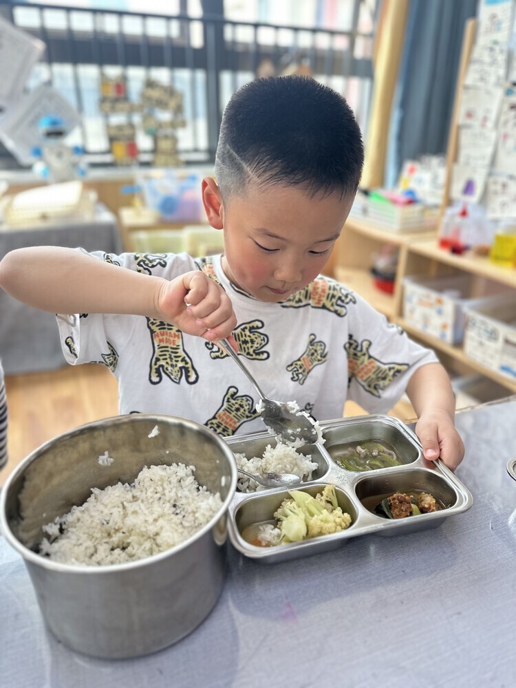 在老师的倡议下,孩子们积极行动起来,用餐时学着用公筷公勺夹菜盛汤,帮助孩子们形成了文明、卫生、健康的用餐习惯。