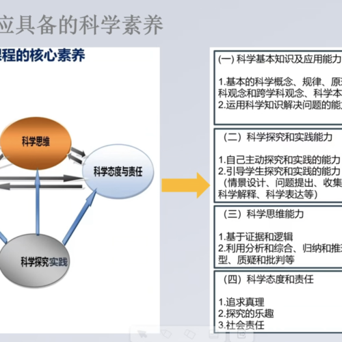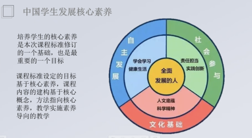 对于学生而言,科学素养的培养也是重中之重。首先是文化基础:人文底蕴和科学精神;然后是自助发展:学习学会和健康生活;最后是社会参与:责任担当和实践创新。