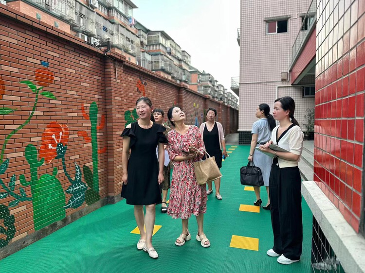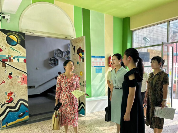 视导组一行在万园长及行政的陪同下,实地查看了幼儿园的基础设施、幼儿活动场地、园所的环境创设等。