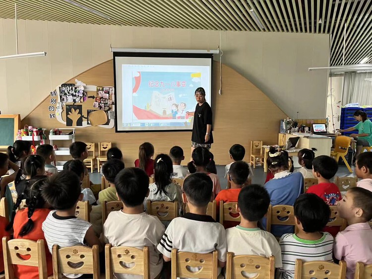 各班教师推送“九一八”事变的ppt,幼儿及老师们通过线上观看的形式,让幼儿了解“九一八”事变这段悲痛的历史,知道中国共产党领导中国人民在抗日战争中取得的伟大成就,深刻感受到中华民族不屈不挠的伟大精神。