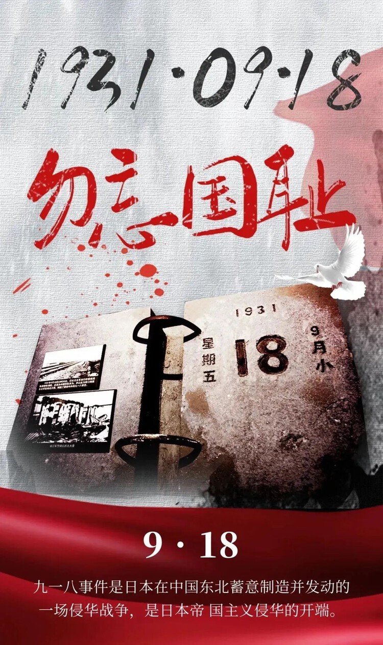 九·一八事变,又称奉天事变、柳条湖事件。是1931年9月18日日本驻中国东北地区的关东军突然袭击沈阳,以武力侵占东北的事件。九·一八事变是由日本蓄意制造并发动的侵华战争,是日本帝国主义企图以武力征服中国的开端,是中国抗日战争的起点,标志着中国局部抗战的开始,揭开了第二次世界大战东方战场的序幕。九一八事变后,中国人民的局部抗战也标志着世界反法西斯战争的起点。