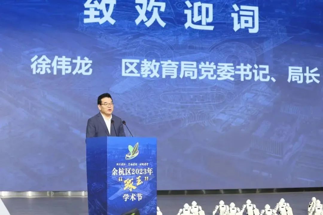 区教育局党委书记、局长徐伟龙在开幕式上指出,当前余杭区围绕“城市新中心,余杭好教育”的战略部署,正全力推进教育高质量发展。过去一年,区教育局全面推进教育高质量发展“三优”行动,组织专家对52所义务段公办学校进行督查评估,围绕学校教育管理、课堂教学改革、教师队伍建设等环节进行问诊把脉。本次学术节,以良渚玉文化为载体,以精雕细琢的教育内涵为路径,为全区各校搭建以学术为引领,以创新为核心,以实践为导向的平台,希望各校充分利用学术节的平台,凝练“三优”行动的阶段性成果,向省内外学校分享生动可鉴的“余杭经验”。