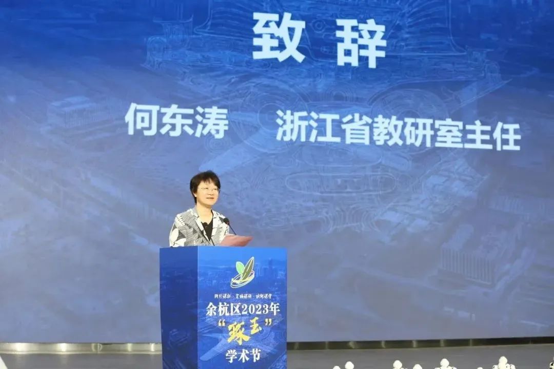 浙江省教育厅教研室书记、主任何东涛在致辞中表示,近年来余杭教育的高质量发展引起广泛关注,在深化教育改革、拓展教育资源、提升教育质量等方面已经取得新的突破和成就,尤其是以下三方面的做法:一是紧抓发展机遇,推进美好教育;二是聚焦核心素养,转变学教关系;三是丰富特色课程,厚植余杭文化。她希望,余杭全区的教育工作者要以学术节为载体,不断砥砺奋进,真抓实干,聚力打造优质均衡、人民满意的美好教育。