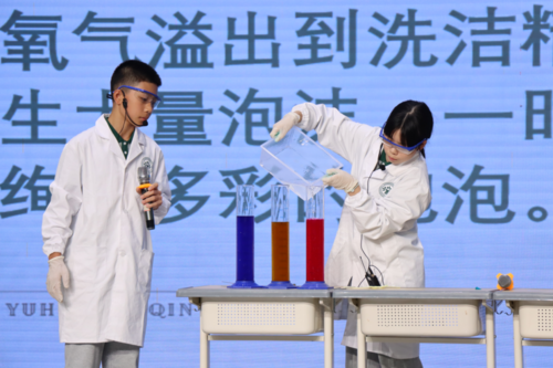 随后,区内10所中小学的师生进行了语文、数学、英语、体育、社政、科技等11门学科的实践成果展示,带来了一场融汇中西、贯通古今、文理兼备的课堂改革成果盛宴。