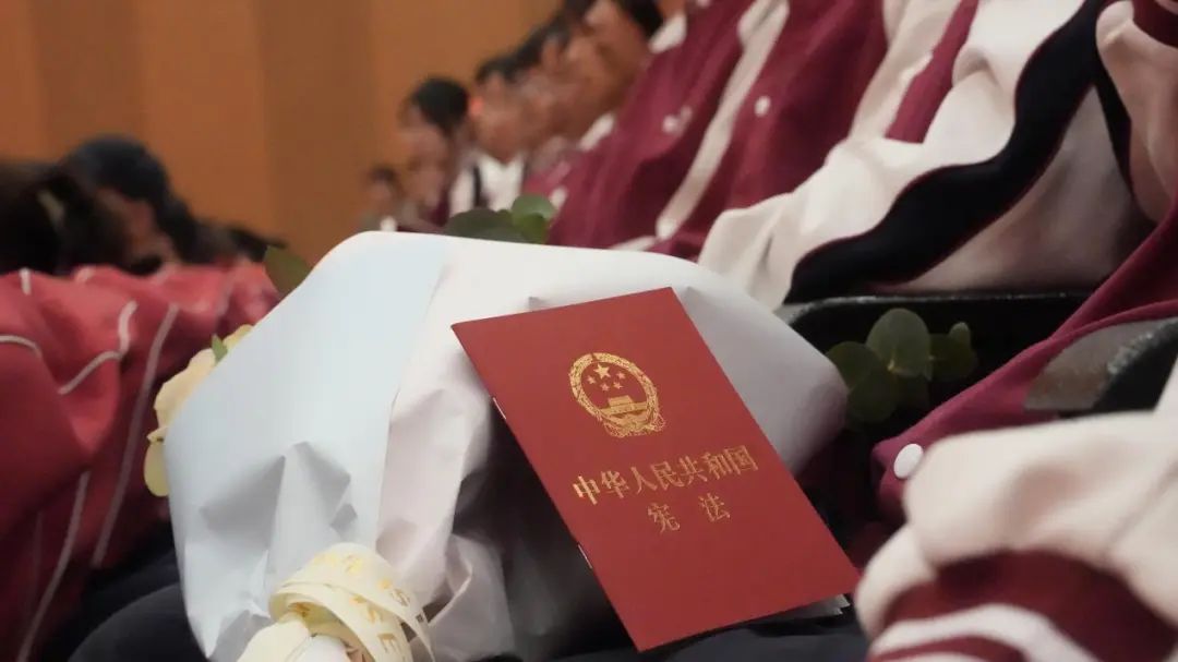 高举右拳庄严宣誓,一字一句,铿锵有力,向所有的亲人、朋友、师长宣告自己已然长大,必将承担起作为公民的责任,完成属于自己的义务。手中那一本本“沉甸甸”的《中华人民共和国宪法》,寄托了学校对同学们做守法公民、担时代重任的殷切期盼。